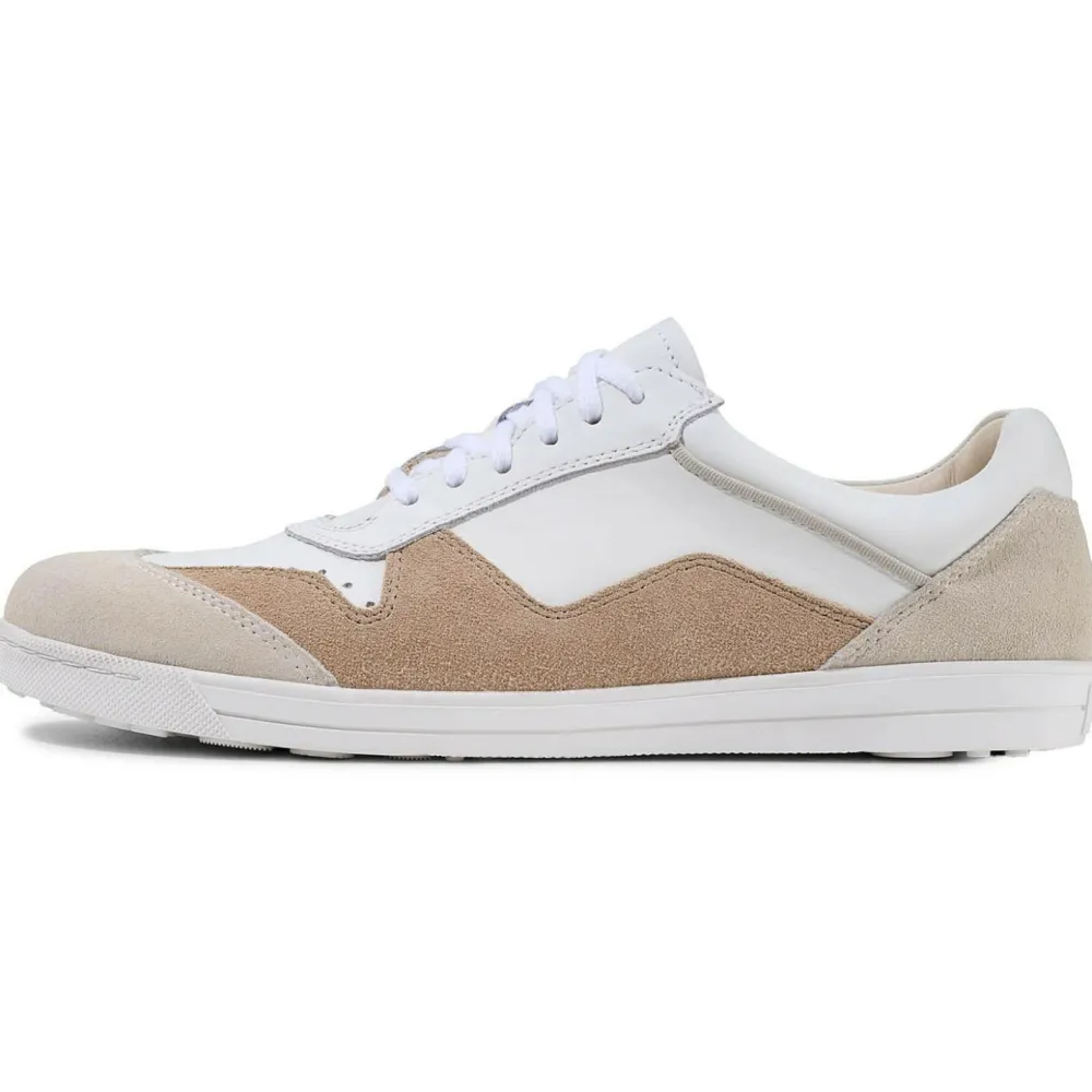 Die dünne Sneaker-Sohle aus reinem Naturkautschuk sorgt für ein kontrolliertes, bewusstes Auftreten. Sie ist flexibel genug, damit Du den Untergrund gut wahrnimmst, bietet aber dennoch eine leichte Dämpfung beim Abrollen. Das herausnehmbare Fußbett aus Resilienzschaum mit Lederbezug nimmt den ersten Aufprall sanft auf, ohne das natürliche Laufgefühl zu verfälschen.