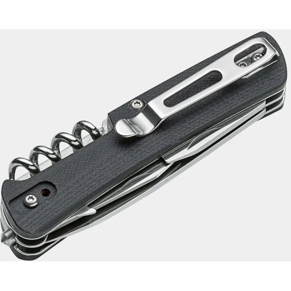 Die Konstruktion baut auf soliden Stahlplatinen auf, die in Griffschalen aus G10-Material eingebettet sind, die dem Messer Stabilität und eine gute Ergonomie verleihen. Die Klinge aus Sandvik-Stahl mit einer Rockwellhärte von 58-60 HRC sorgt für eine ideale Schnitthaltigkeit. Ausgestattet mit vielen praktischen Werkzeugen und einem umsetzbaren Clip wird das Tech Tool City 2 zum praktischen Helfer beim Werkeln, Fixieren, Schrauben, Schneiden und Flaschenöffnen.