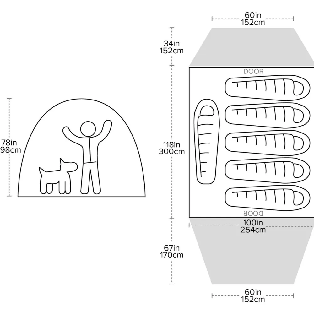 Mit dem Bunk House 6 6-Personen-Zelt von Big Agnes bist Du perfekt ausgestattet, um die Schönheit der Natur in vollen Zügen zu genießen. Selbst wenn sich das Wetter mal von seiner ungemütlichen Seite zeigt, kannst Du Dich auf trockene und gemütliche Bedingungen im Inneren des Zelts verlassen. Hierfür sorgen hochwertige Materialien und wasserdichte Eigenschaften, die Regen und Niederschlag sofort in die Schranken weisen. Das geräumige Innenleben des Zelts sorgt für ein offenes und luftiges Raumgefühl, während Du in der Natur entspannst. So kannst Du Dich trotzdem im Stehen umziehen und gemütlich im Zelt sitzen und den Abend genießen.