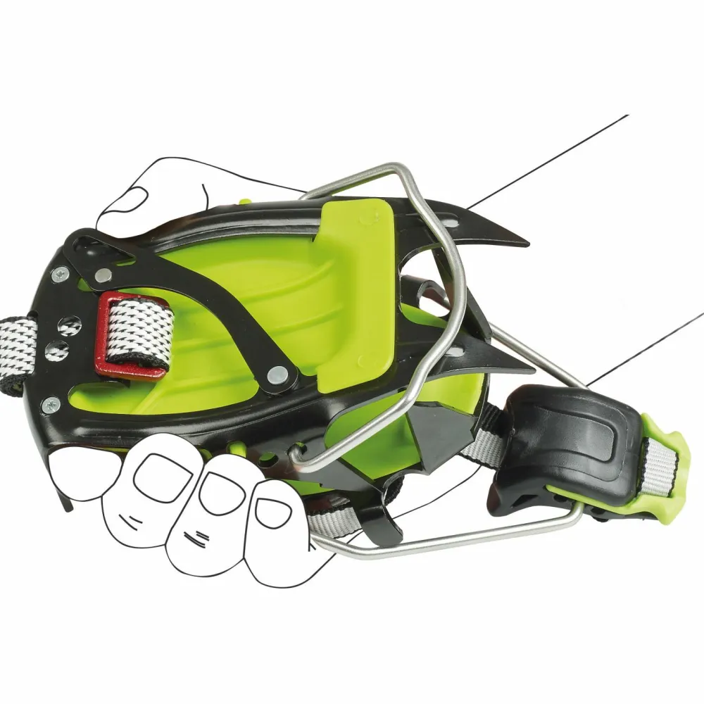 Wer noch auf der Suche nach leichten und vielseitigen Steigeisen ist, der solle auf jeden Fall die Ascent – Auto / Semi-Auto von Camp in die engere Wahl nehmen. Diese Steigeisen kommen mit zehn Zacken und bieten so allzeit gute Trittsicherheit bei Gletschertouren. Durch den flexiblen Steg passen sie sich außerdem bestens an die Sohlenform an und sitzt immer sicher. Pluspunkt in Sachen Anpassungsfähigkeit: Das Bindungssystem lässt sich bei diesem Modell austauschen. Hierdurch kann es entweder als Automatik- oder Halbautomatiksteigeisen getragen werden. Außerdem lässt es sich in der Länge einstellen und eignet sich so für die Schuhgrößen 34-48. Sollen die Steigeisen im Rucksack transportiert werden, lassen sie sich kompakt zusammenschieben.