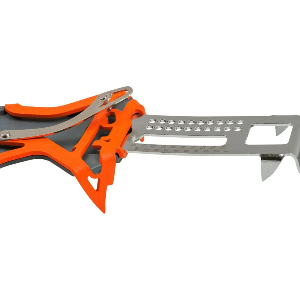 Der hintere Teil der Steigeisen garantiert eine höhere Leichtigkeit und Flexibilität in der Gerätelänge für eine perfekte Anpassung an alle Sohlen. Auch der Übergang zur Doppelzackenkonfiguration oder die Auswechslung der Eiszacken durch Hartschneezacken ist einfach und schnell. Das asymmetrische Design der Blade Runner, und insbesondere das Design des vorderen Teils garantieren exzellente Leistungen bei jeglicher Art von Schuhen und Verstellung. Echte Hochleistungssteigeisen von C.A.M.P.!