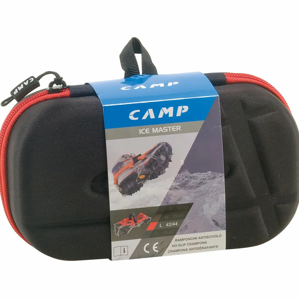 Die Ice Master Grödel von C.A.M.P. sind sehr robust gebaut und besonders leicht anlegbar mit ihrem elastischen Befestigungssystem aus Gummi und Polyamid. Dank des gelenkartigen Vorderteils kann man fast ganz normal damit gehen. Solche Grödel wie den Ice Master sind auch für Bergschulen ideal, die ihren Gäste kurze Gletscherwanderungen auf aperem Gletscher anbieten.