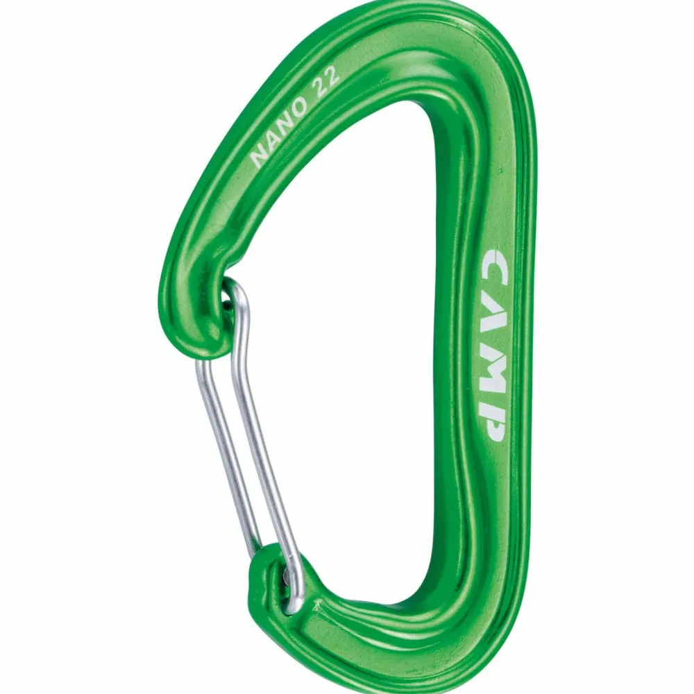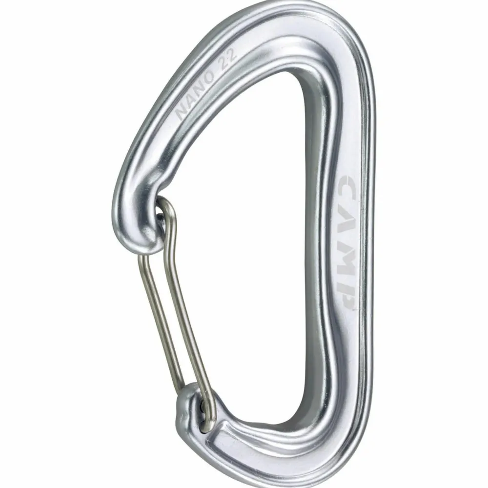 Der Nano 22 Wire-Karabiner von C.A.M.P. gehört zu den Leichtgewichten seiner Art. Als großer Klassiker wurde der Nano bereits mehrfach überarbeitet und ist nun noch leichter und besser als seine Vorgänger. Geringes Gewicht auf Kosten der Belastbarkeit und Größe? Weit gefehlt! Das beginnt beim Wert der Bruchlast bei offenem Schnapper, die vergleichsweise hoch ausfällt. Hinzu kommt eine verbesserte Nase, die das Öffnen und Schließen des Karabiners optimiert.