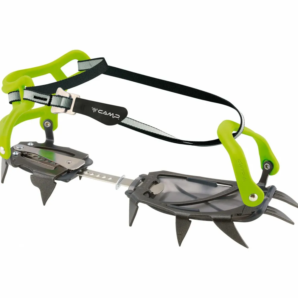 Die Stalker Universal Steigeisen von C.A.M.P. lassen sich hervorragend an alle modernen Bergschuhe anpassen. Sie sind mit einem verstellbaren Steg ausgestattet, mit dem sich der Abstand zwischen vorderer und hinterer Platte passgenau justieren lässt. Das Einstellen erfolgt dabei ohne Werkzeug und ist im Handumdrehen erledigt.