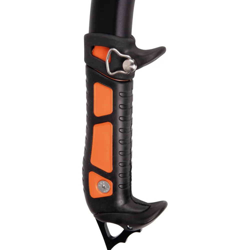 Der modulare Kopf ermöglicht einen einfachen Wechsel von verschiedenen Hauen, Schaufeln oder Hämmern. Der Griff lässt sich der Handgröße und dem jeweiligen Terrain anpassen. Last but not least ermöglicht der mit Handschlaufen-Karabineröse versehene Stahldorn ein sicheres Abstützen in steilen Gletscherflanken.