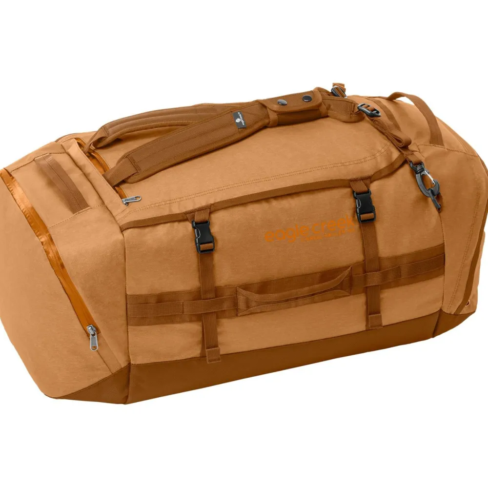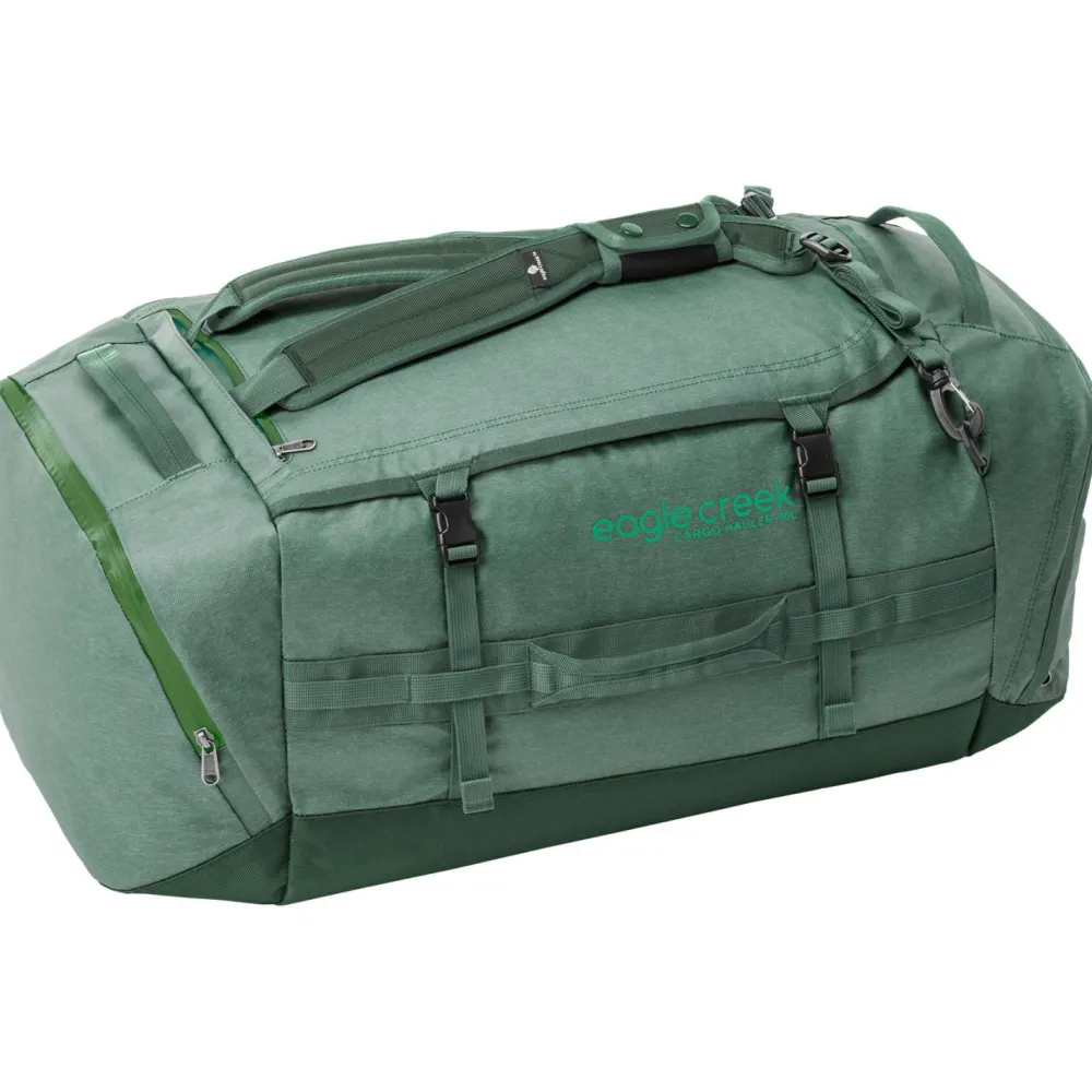 Die Cargo Hauler Duffel 90 von Eagle Creek, ist eine ausgetüftelte Duffel für unterschiedlichste Art von Reisen aus zum Teil recyceltem Material. Die Duffel hat Rucksacktragegurte, welche sich in der vorderen Reißverschlusstasche verstauen lassen. Zusätzlich sorgen einige Tragegriffe für vielseitige Tragemöglichkeiten. Mit einem Schloss, lassen sich alle Reißverschlüsse an einem zentralen Verschlusspunkt verschließen. Das Hauptfach lässt sich weit öffnen. Zusätzlich sind noch zwei Seitentaschen vorhanden. Die Reißverschlüsse sind durch spezielle Features geschütz.