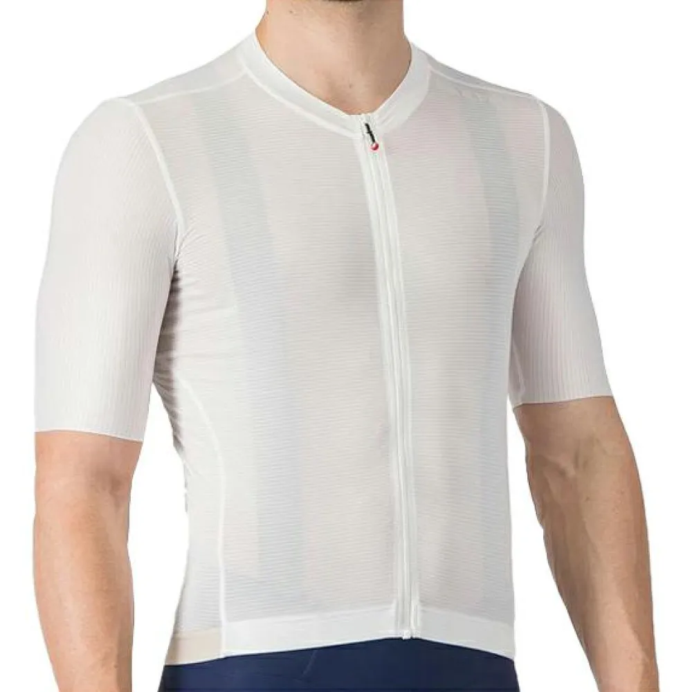 Das Castelli-eigene Air O Stretch-Material sorgt für Atmungsaktivität, Komfort und eine Passform, die sich Deinem Körper optimal anpasst. Die Stoffe sind so gewählt, dass sie sowohl für Belüftung als auch für aerodynamische Effizienz sorgen. Ärmel mit rohem Schnitt bieten Dir ein druckfreies Tragegefühl, selbst bei langen Fahrten.