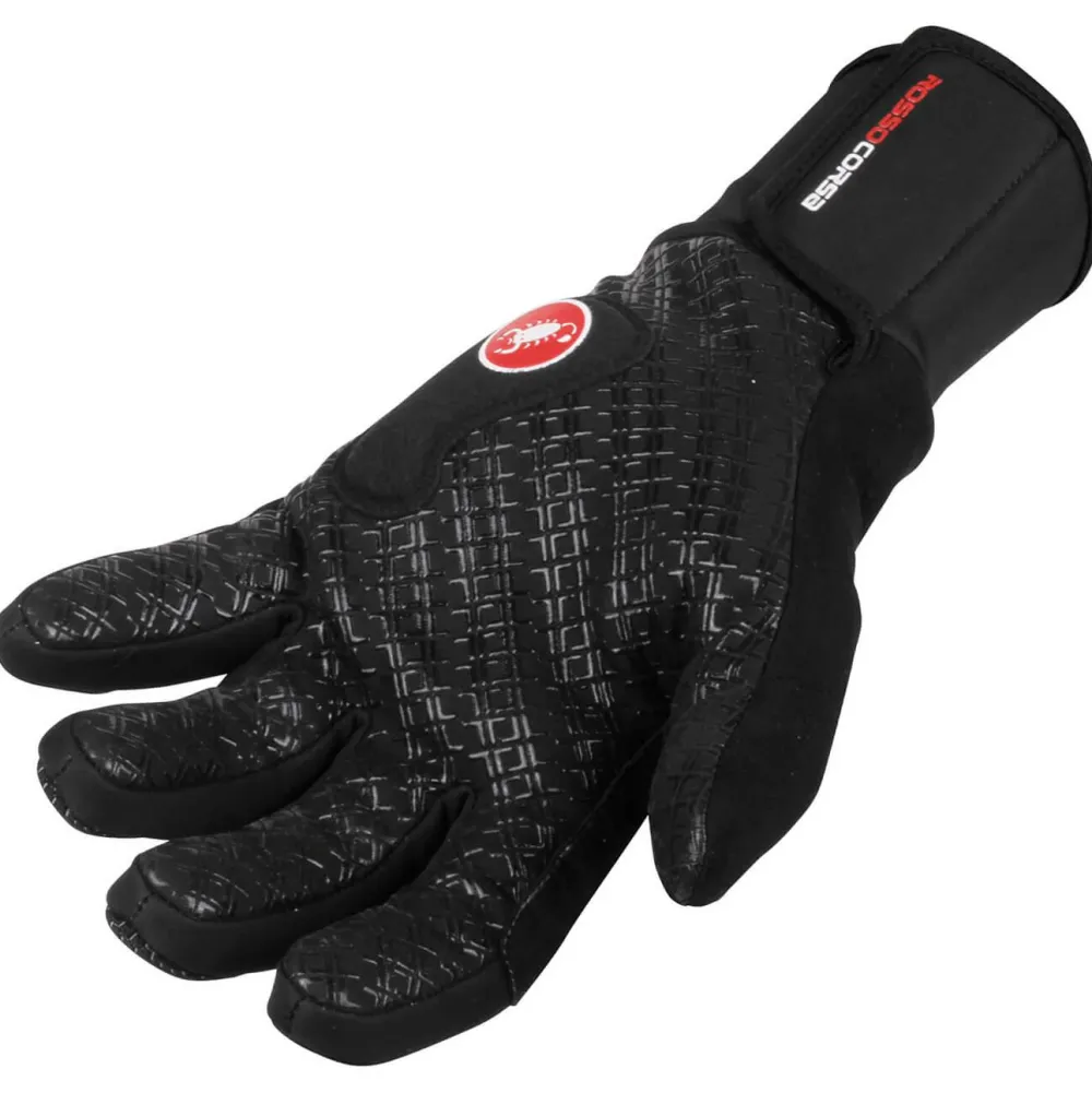 Wie es der Name schon vermuten lässt – der Estremo Glove von Castelli ist für Touren bei extremen Bedingungen gemacht. Eisiger Wind und Temperaturen im Minusbereich machen dem Radhandschuh nicht das Geringste aus! Dafür sorgt seine Fertigung aus dem winddichten Außenmaterial WINDSTOPPER X-Fast in Zusammenspiel mit einem wärmenden Fleecefutter. Das robuste WINDSTOPPER Material bietet neben seinem vollkommenen Windschutz auch ein wasserabweisendes Verhalten. So sind kurze Schauer oder gar Schneefälle kein Problem für den Radhandschuh. Das Fleeceinnenfutter sorgt für eine hohe Wärmeisolation und den raschen Abtransport von Schweiß. Auch mit seiner Ausstattung weiß der Estremo Glove von Castelli zu überzeugen. Die Handfläche mit Silikondruck bietet rutschfesten Grip am Lenker. Die anatomische Form, das lange Neoprenbündchen mit Klettverschluss und der Daumenbesatz aus Microsuede-Kunstleder runden das Programm des Estremo Glove von Castelli ab.