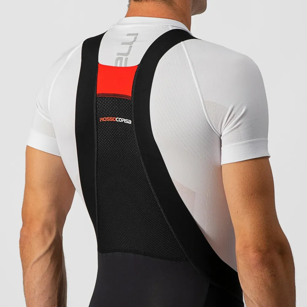 Vorgeformte Knie- und Beinpartien sind speziell auf die Bedürfnisse von Radfahrern angepasst. Am Rücken der Sorpasso RoS Bibtight sorgt ein wasserabweisender Einsatz dafür, dass hochspritzendes Wasser vom Reifen nicht an den Körper gelangt. Reflektierende Elemente auf der Außenseite erhöhen die Sichtbarkeit bei schlechten Wetterverhältnissen.