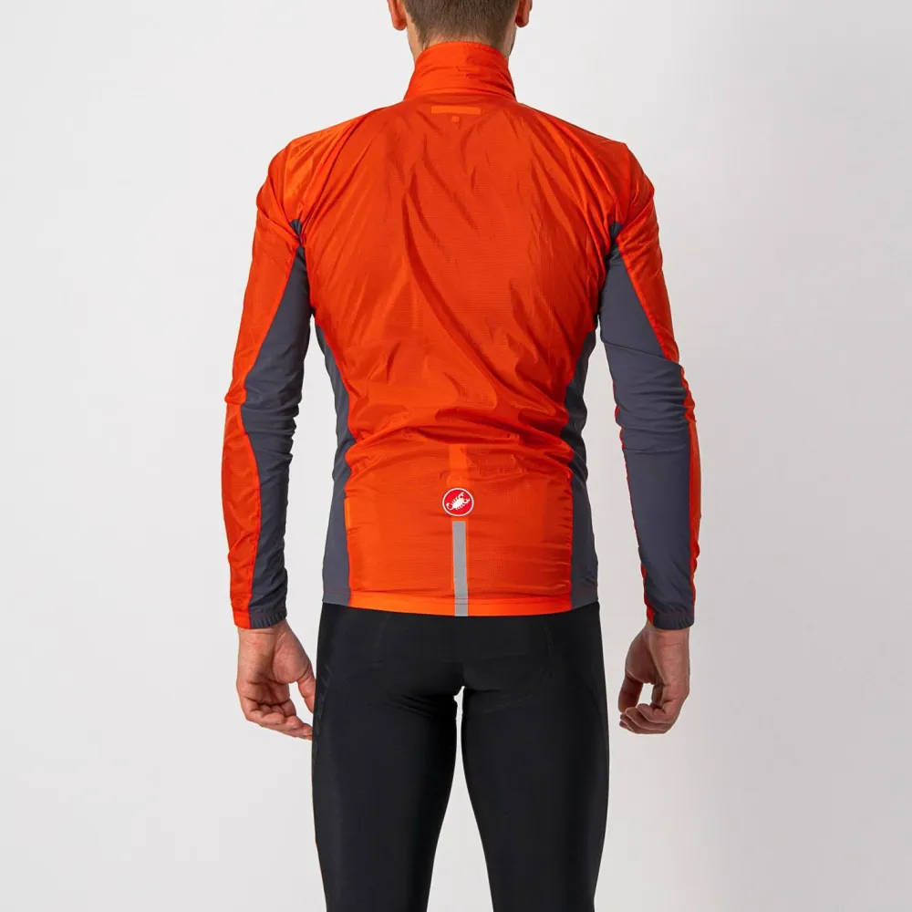 Die Squadra Stretch Jacket von Castelli ist ideal für wechselhafte Tage und rasante Abfahrten an kühlen Tagen. Das leichte und winddichte Gewebe schützt den Körper vor kalter Zugluft. Dank der leichten Materialien lässt sich die Jacke extrem kompakt zusammenpacken. Dadurch kann sie auch schnell und einfach in einer Rückentasche verschwinden. Elastische Abschlüsse an den Ärmeln und am Saum schmiegen sich eng an. Der ergonomische Schnitt verhindert, dass die Jacke im Wind flattert.