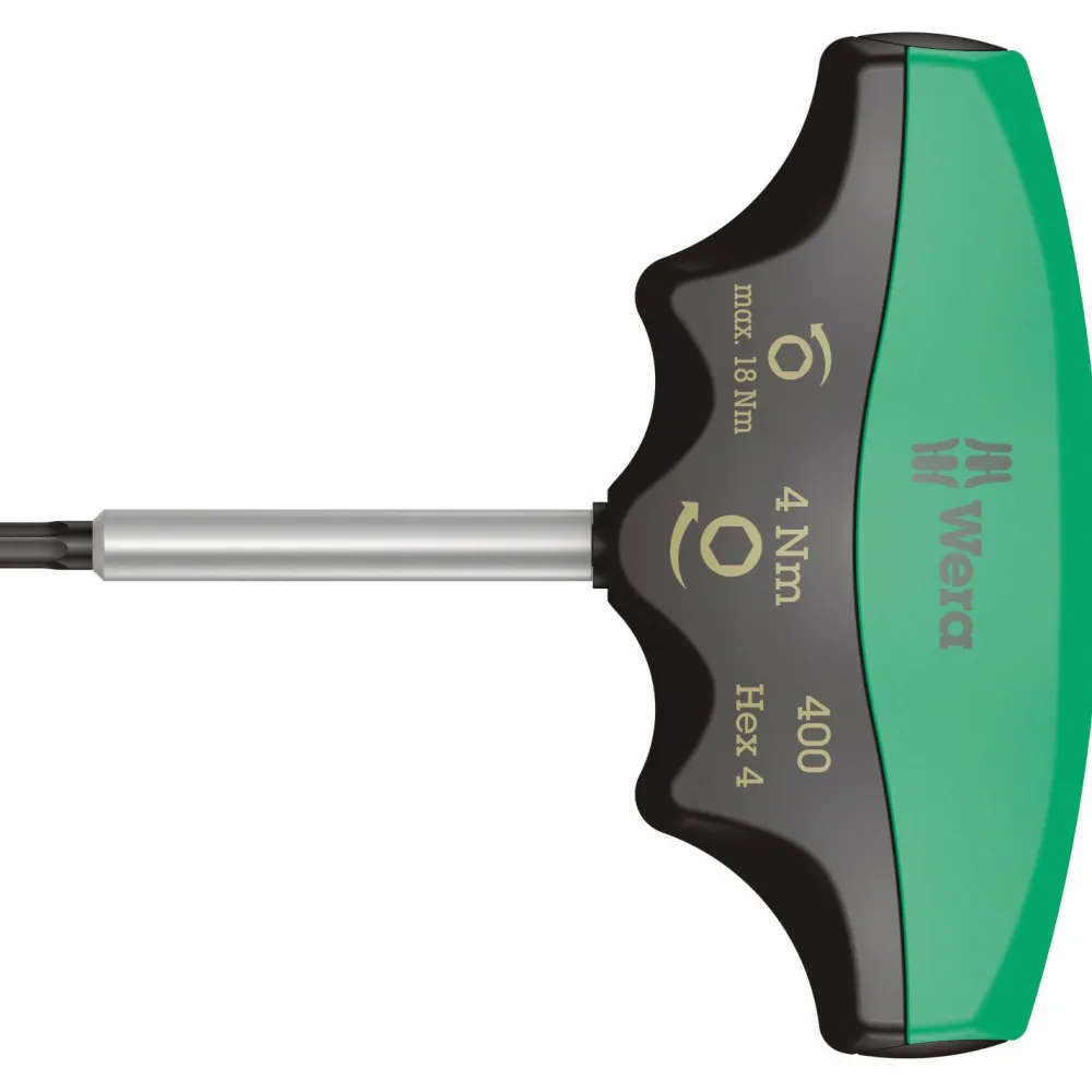 Wera 400 Hex Drehmomentindikator mit festem Drehmoment für Innensechskant Schrauben: die robuste Rutschkupplung garantiert ein deutlich hör- und fühlbares Auslösesignal bei Erreichen des eingestellten Drehmomentes und ein Überziehen des Drehmomentes ist unmöglich. Mehrfach höheres Lösemoment als das eingestellte Anzugsmoment, dadurch wird größtenteils kein weiteres Werkzeug zum Lösen von Schraubverbindungen benötigt. Die Form des Griffs füllt die ganze Hand gut aus und die Finger liegen in den weich gerundeten Griffmulden. Dadurch ist eine optimale, ergonomische Kraftübertragung gewährleistet.