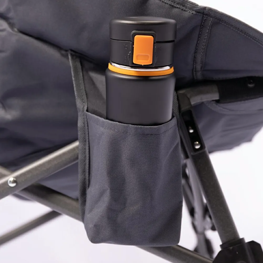 Den Vango Crater Chair wirst Du beim Camping sehr schnell lieben lernen! Mit seiner breiten, gepolsterten Sitzfläche und der Rückenlehne bietet er Dir ordentlich Luxus beim abendlichen Vor-dem-Zelt-sitzen. Der Stuhl gewährleistet mit seinem starken, haltbaren Stahlrahmen Stabilität und Sicherheit. Außerdem ist er mit einem Sicherheitsschloss ausgestattet. Die Netzfüße verhindern ein Einsinken in weichen Boden und sorgen so für festen Halt. Dank seiner einzigartigen Klappfunktion und den Tragegriffen an der mitgelieferten Packtasche ist der Crater Chair unglaublich mobil und lässt sich leicht transportieren. Die Seitentasche bietet zusätzlichen Stauraum für Snacks oder Getränke. Genieße Deinen Campingausflug mit diesem bequemen und praktischen Stuhl.
