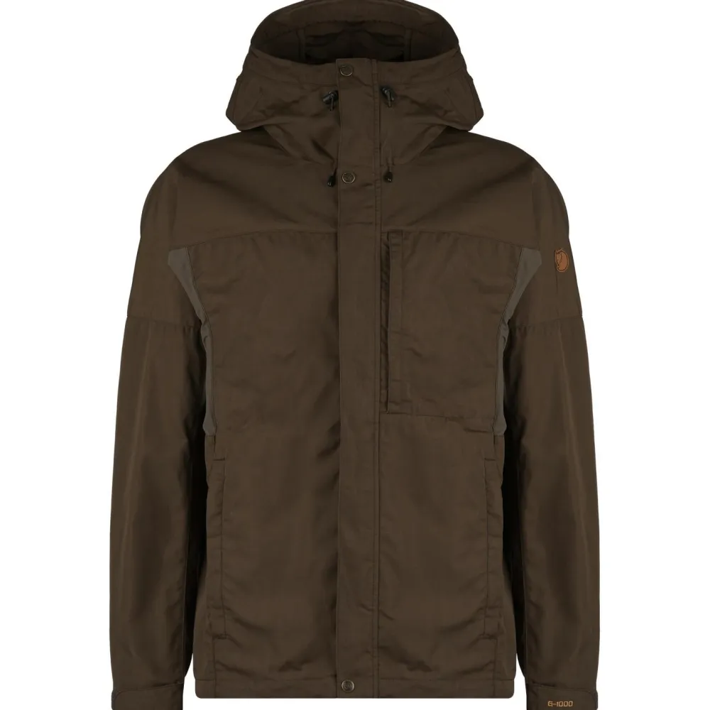 Die Kaipak Jacket von Fjällräven kombiniert lässigen Style mit sportlich-funktionellen Outdoor Features!Als Obermaterial legt die Freizeitjacke mit dem stark belastbaren G-1000 Eco vor. Das ist hoch atmungsaktiv, wasser- und windabweisend und darüber hinaus aus recyceltem Polyester und biologisch angebauter Baumwolle gefertigt und mit einer umweltfreundlichen Wachs-Imprägnierung versehen. Die sportliche Schnittführung wird durch elastische Unterarm-Zwickel unterstützt, was für angenehme Bewegungsfreiheit sorgt. Die Kapuze ist verstellbar und mit einem verstärkten Schirm ausgestattet. Der Front-Reißverschluss ist in beide Richtungen bedienbar und kommt mit einer Windabdeckleiste. Der Hüftbund kann über einen Kordelzug verstellt werden und die Ärmel lassen sich per Klettverschluss regulieren. An der Taschenfront packen eine Brusttasche, zwei Fronttaschen – allesamt mit Zip – und satte drei Innentaschen alles wag, was man unterwegs griffbereit haben möchte.