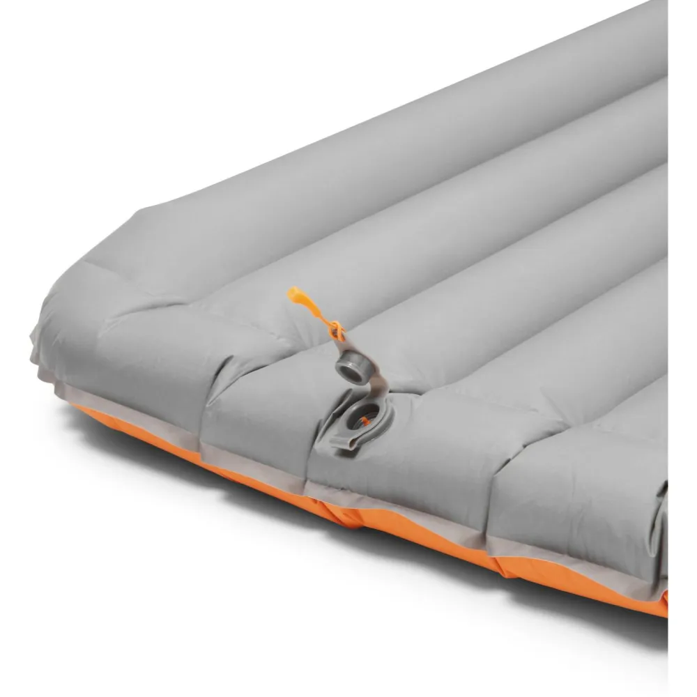 Die 800FP europäische Gänsedaune sorgt für exzellente Wärmeleistung bei minimalem Gewicht, während das recycelte 20D Polyester-Material strapazierfähig und kompakt ist. Übergroße äußere Kammern stabilisieren Deine Position, und das flache Zwei-Wege-Ventil erleichtert das Handling.