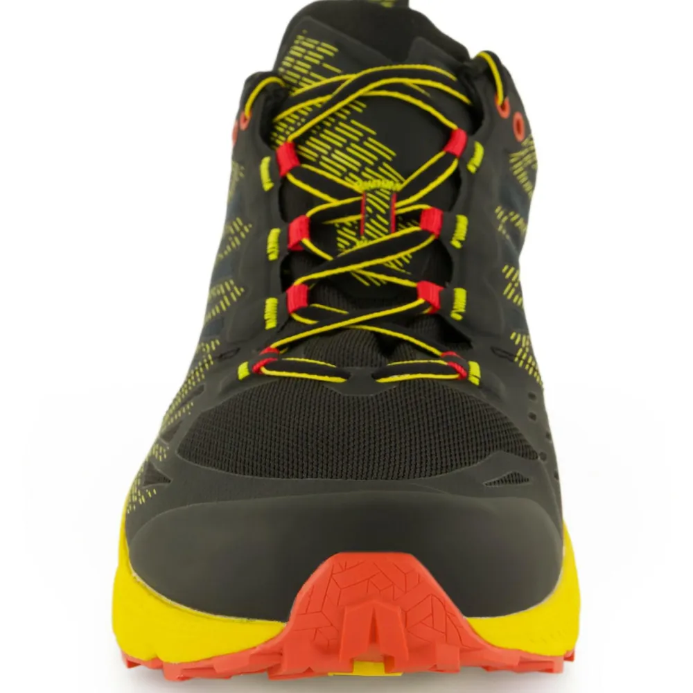 Die Jackal II Trailrunningschuhe von La Sportiva sind bereit für die ambitionierten Läufe auf wurzeligen, steilen und schweißtreibenden Trails. Dank ihrer enorm rutschfesten Sohle kannst Du Dich auf die Traktion voll und ganz verlassen. Auch wenn es über nasse Wurzelteppiche, oder Steine geht, sorgen die Schuhe für sicheren Halt. Damit diese Eigenschaft auch in puncto Tragekomfort zutrifft, sind die Schuhe mit einer robusten Schnürung versehen. Sie kann schnell und einfach auf die individuelle Passform eingestellt werden.