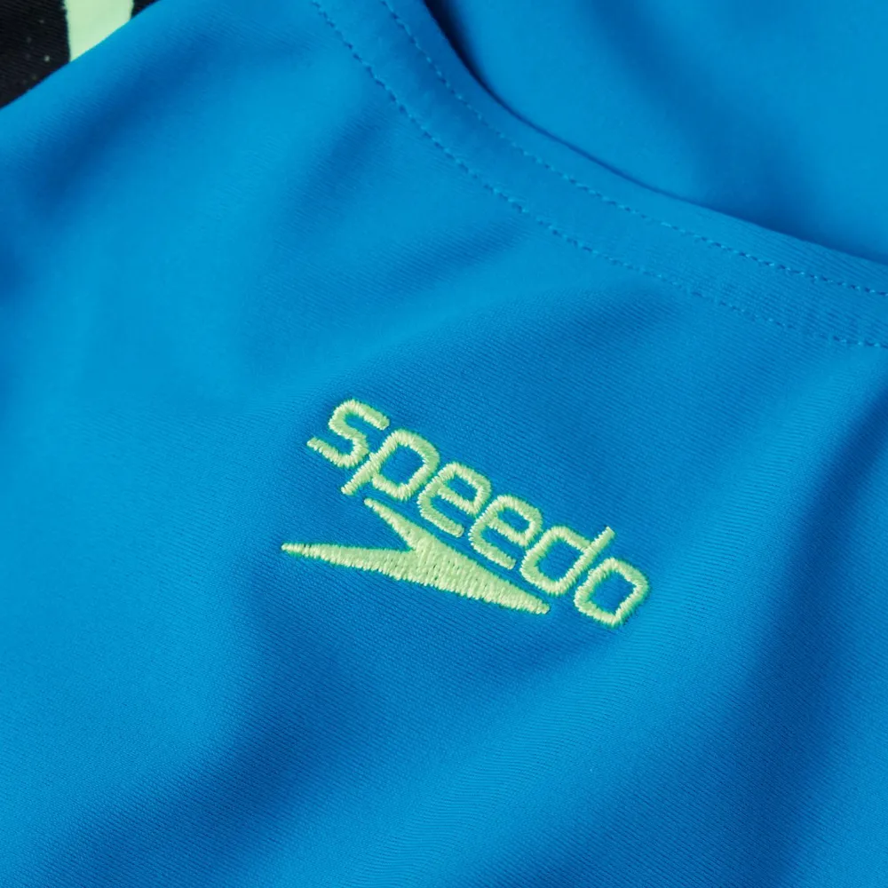 Du bist Schwimmerin mit Leidschaft und liebst es regelmäßig für Dein Schwimmtraining ins Hallenbad zu gehen, dann ist der Badeanzug Kid’s Hyperboom Splice Muscleback von Speedo genau die richtige Wahl für Dich. Dank der elastischen und enganliegenden Passform trägt er sich wie eine zweite Haut und Du fühlst Dich wie ein Fisch im Waser. Außerdem ist er chlorbeständig und schnelltrocknend. Der Schwimmerücken lässt Dir beim Drehen Deiner Runden genügend Bewegungsfreiheit in den Armen und in den Schultern.
