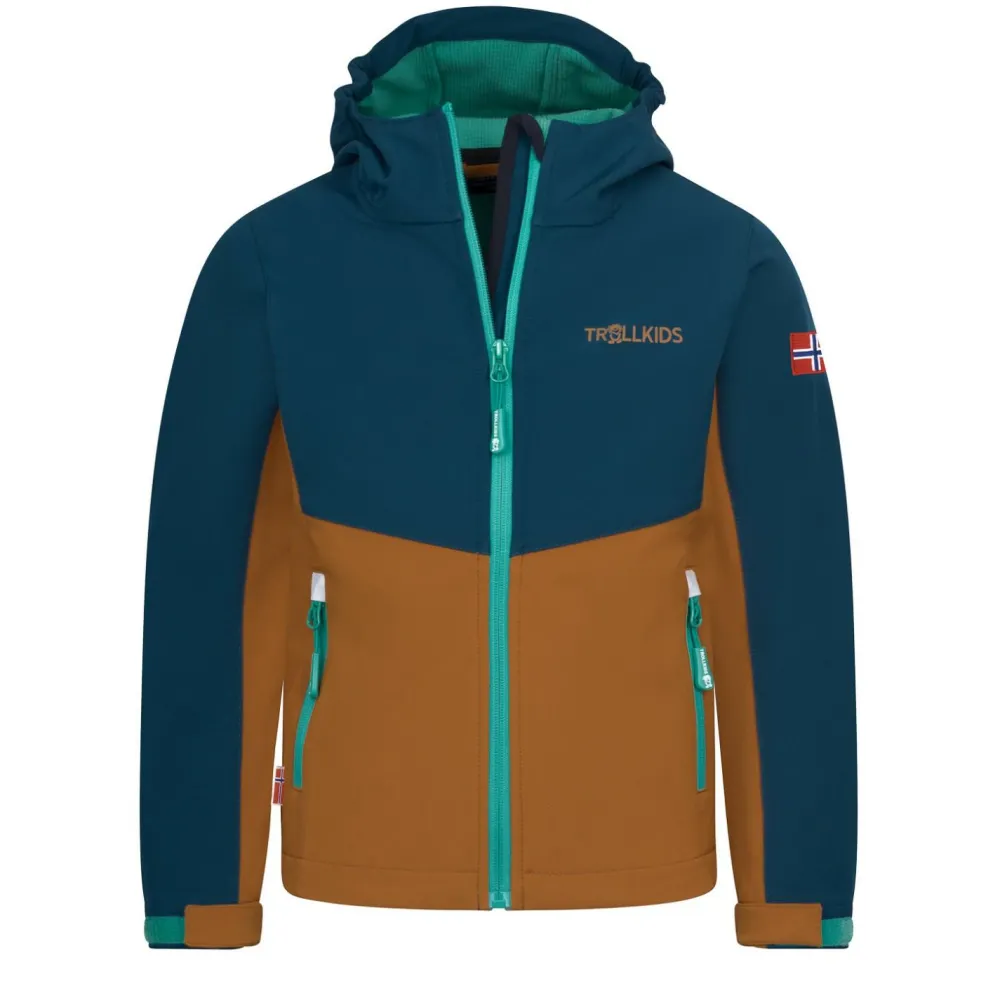 Die Kid’s Kristiansand Jacket Softshelljacke von Trollkids ist eine sportliche Outdoor-Jacke für aktive Kids! Bequem und atmungsaktiv macht die Jacke jede Bewegung mit, ohne einzuengen. Die Softshelljacke lässt sich mit einem Front-Reißverschluss bis unters Kinn verschließen und die Kapuze hält die Ohren warm, da sie den Kopf gut umschließt. Zwei Reißverschluss-Fronttaschen bewahren Energieriegel, Handy und Schlüssel sicher auf. Auf der Brust ist das Trollkids-Logo zu sehen, am linken Ärmel das Flaggen-Logo der Firma. Ob für den Spielplatz, den Schlittenausflug oder den Kletterwald, die Kid’s Kristiansand Jacket von Trollkids macht jeden Spaß mit!