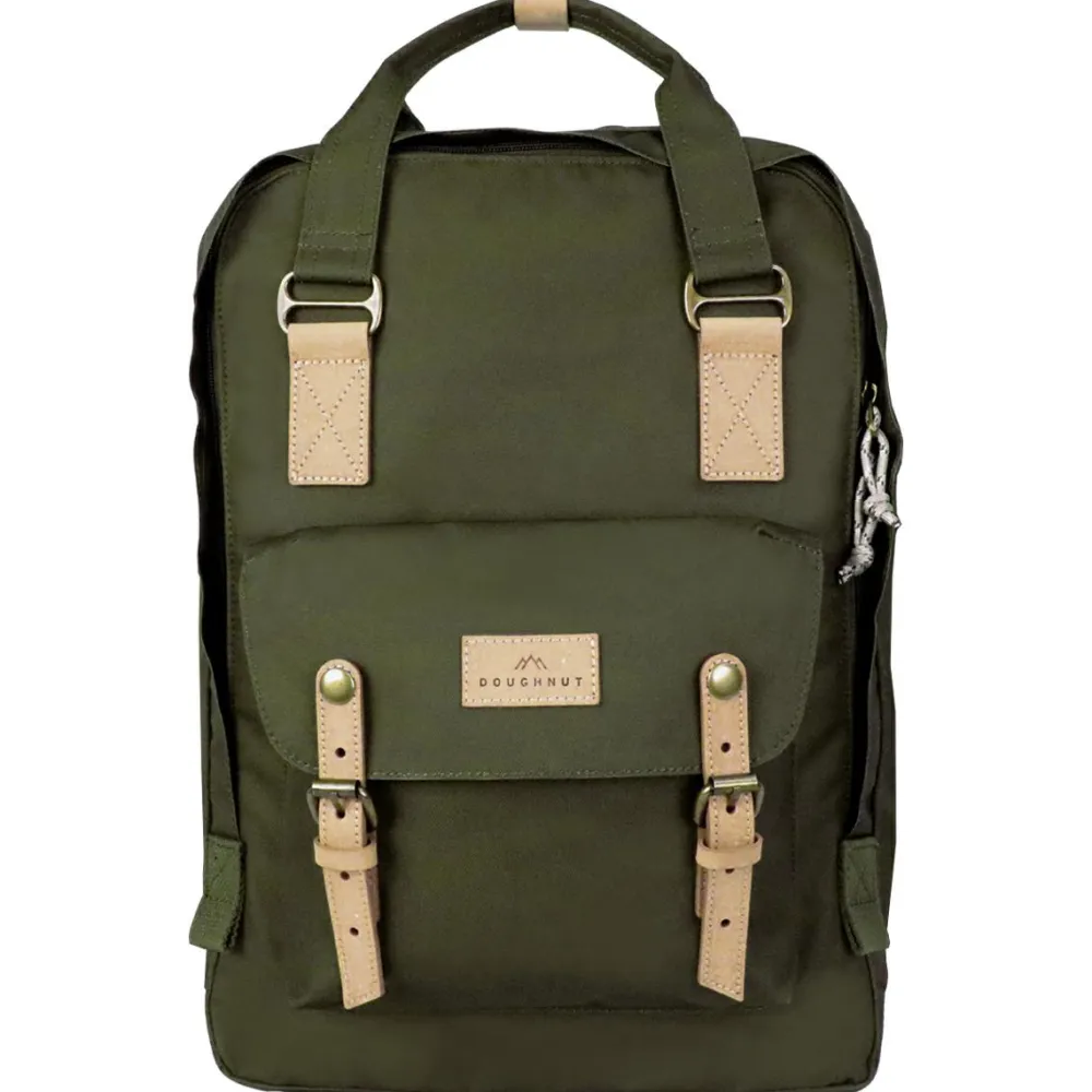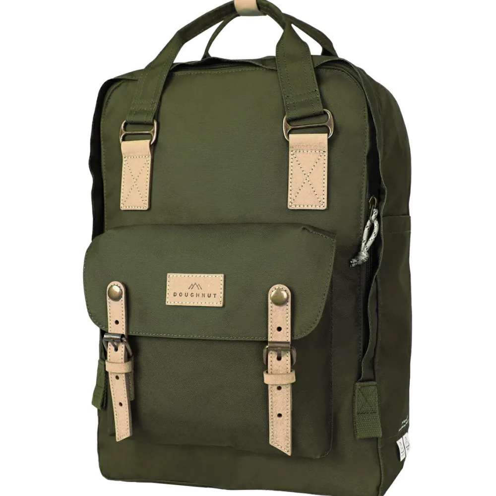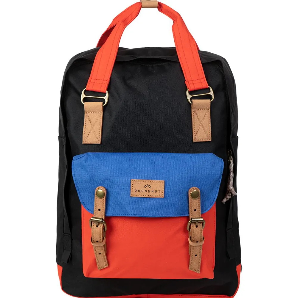 Die Lederriemen an der vorderen Tasche sind mit Druckknöpfen versehen, mit denen Du sie ganz leicht öffnen kannst. Durch den integrierten Reißverschluss lässt sich der Rucksack ganz einfach komplett öffnen. So kannst Du alles sauber und übersichtlich in Deinem Doughnut Rucksack unterbringen. Für Studierende oder Berufstätige eignet sich der Macaroon Rucksack ebenfalls wunderbar. Zu seiner Innenausstattung gehört ein gepolstertes Laptopfach, passend für Geräte bis zu 14“ Zoll und für A4 Dokumente. Des Weiteren hat er kleine Innentaschen und Fächer, die mit Reißverschluss oder Gummiband versehen sind.