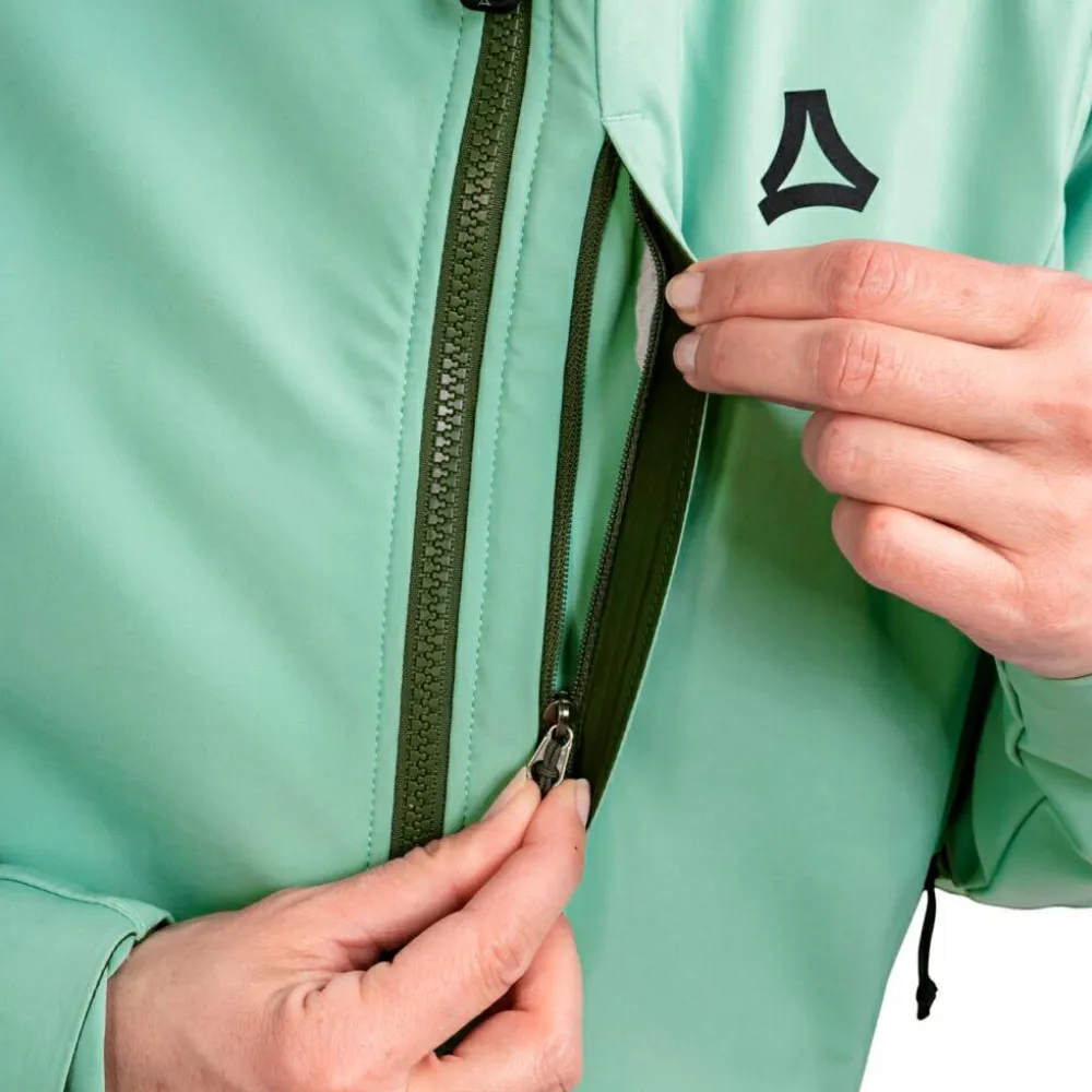 Die Women’s Softshell Jacket Milagle von Schöffel ist Dein zuverlässiger Partner bei jedem Wetter auf Deinen Wanderungen. Der durchgehende Frontreißverschluss mit Kinnschutz macht das An- und Ausziehen komfortabel und schützt gleichzeitig vor unangenehmen Scheuerstellen am Hals. Mit der verstellbaren Kapuze bist Du flexibel auf plötzliche Wetteränderungen vorbereitet, während der Kordelzug im Saum und die Klettverschlüsse an den Ärmeln eine perfekte Anpassung ermöglichen.