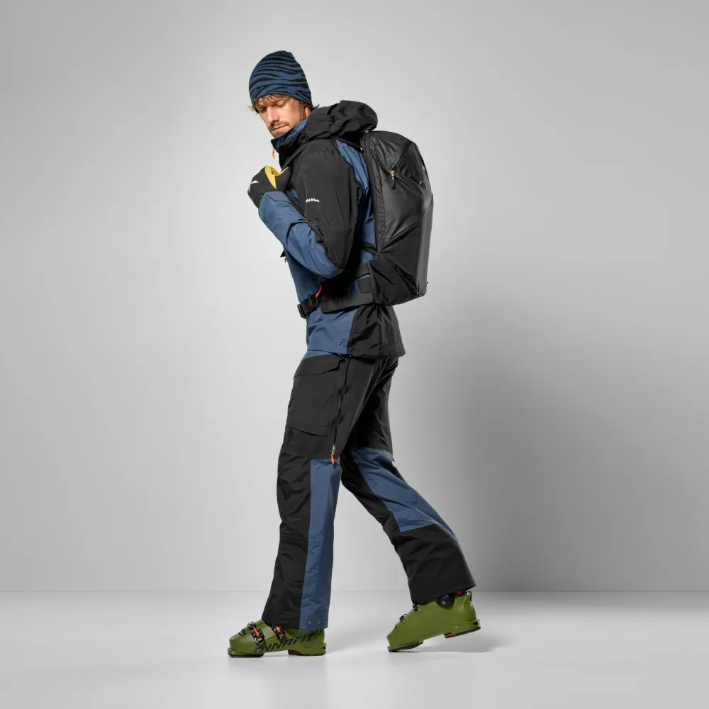 Salewa stattet den Skirucksack mit Tragegriff, gepolsterten Schultergurten, breitem Hüftgurt und verstellbarem Brustgurt aus. Der durchgehende Reißverschluss auf der Rückseite macht das Be- und Entladen besonders schnell und einfach. Beim Skifahren und auf Skitour überzeugt der sportliche Rucksack durch niedriges Gewicht, optimales Volumen und eine robuste Verarbeitung mit 210D Nylon und 330D Ripstop Nylon.