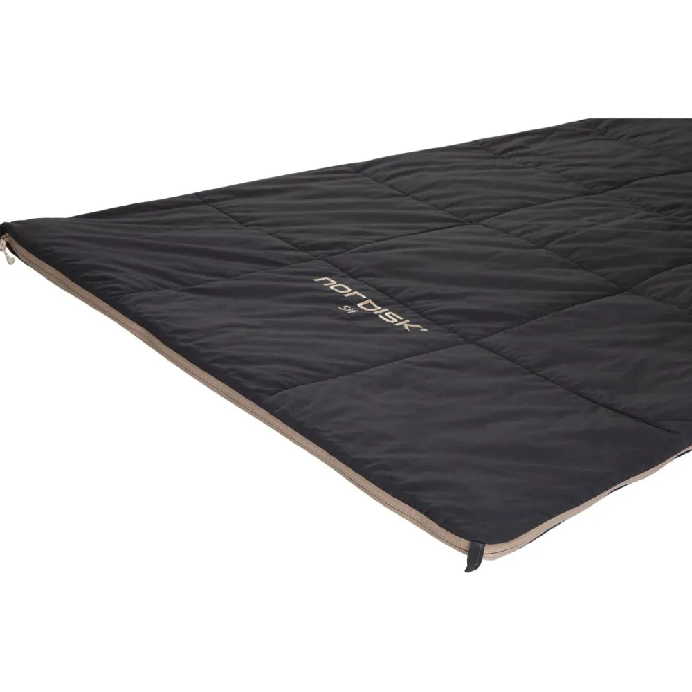 Der Sif +10° Deckenschlafsack von Nordisk ist als Deckenschlafsack konstruiert, was bedeutet, dass er sich flach ausbreiten lässt und vielseitig einsetzbar ist – ideal auch als Decke. Die Kunstfaserfüllung bietet eine gute Balance zwischen Wärmeleistung und Gewicht, wodurch der Schlafsack leicht bleibt und dennoch effektiv isoliert. Diese Materialwahl sorgt dafür, dass der Schlafsack langlebig und pflegeleicht ist – perfekt für regelmäßige Campingausflüge.