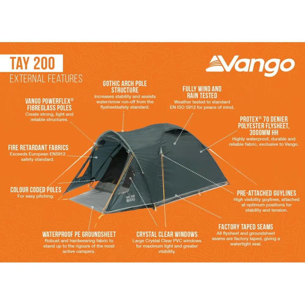 Wer zum Festival oder Campen unterwegs ist, der ist mit dem 2-Personen-Zelt Tay 200 von Vango gut ausgestattet!