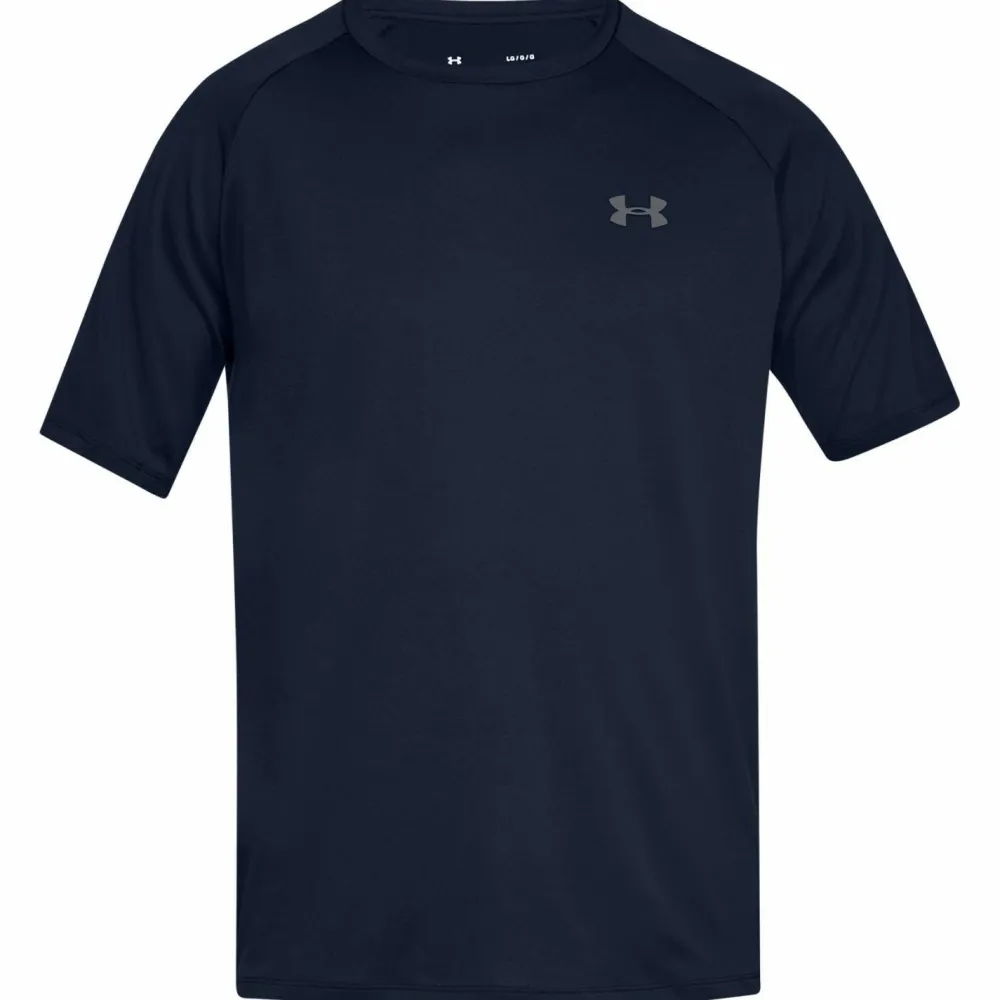 Lockeres und funktionales Shirt für Sport und Freizeit – das UA Tech S/S Tee von Under Armour ist aus einem leichten Polyesterstoff gefertigt. Das schnell trocknende und pflegeleichte Gewebe hält den Körper beim Laufen oder Trainieren im Fitnessstudio angenehm trocken. Das Gewebe trägt sich komfortabel auf dem Körper ohne zu kratzen. Der körpernahe Schnitt sorgt für einen sportlichen Look. Optisch wird das Shirt mit einem Print-Logo abgerundet. Der verlängerte Saum verdeckt den unteren Rücken und ist somit ideal für bewegungsintensive Sportarten.