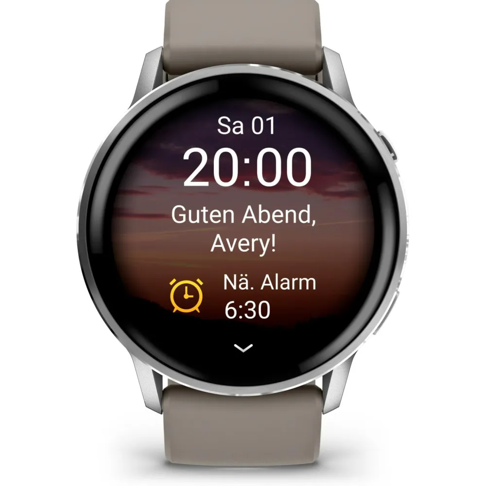 Body Battery, Stresslevel, Pulse Ox, Frauengesundheit sowie zahlreiche weitere 24/7 Messwerte unterstützen Dich dabei, körperliche Veränderungen einzuordnen. Die erweiterte Schlafanalyse mit Sleep Score, Schlafcoach, HFV-Status sowie Informationen zu Hauttemperatur und Atemmuster liefert Dir detaillierte Einblicke in Deine Regeneration.