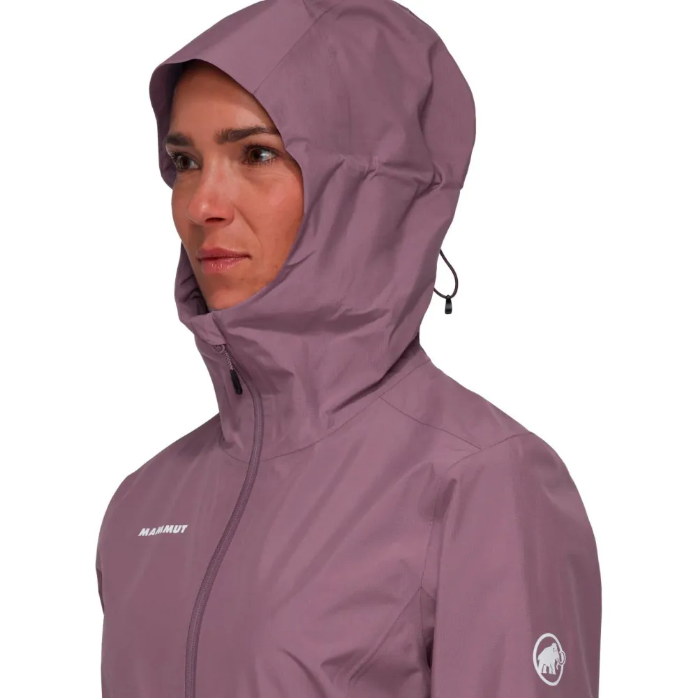Die leichte Women’s Alto Light Hardshell Hooded Jacket von Mammut lässt sich beim Wandern platzsparend im Tourengepäck verstauen Mit Kordelzug im Jackensaum und Klettverschlüssen an den Ärmelabschlüssen lässt sie sich bequem anpassen. Darüber hinaus sind die Ärmel ergonomisch vorgeformt und unterstützen das stretchfähige Material in seiner Bewegungsfreiheit.