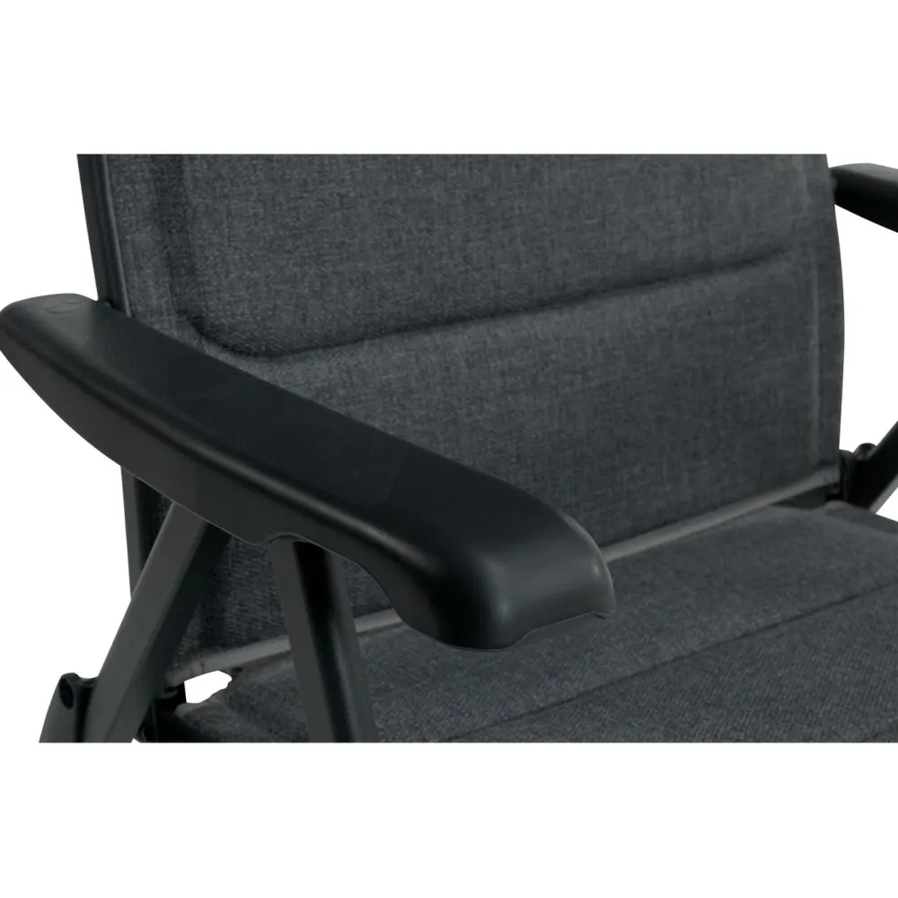 Der Clements Campingstuhl von Outwell lässt sich in 7 Positionen einstellen und bietet eine breite Sitzfläche. Der Bezug ist mehrlagig aufgebaut und besteht aus lösungsgefärbtem Polyester mit Schaumzwischenlage. Ein pulverbeschichteter Aluminiumrahmen sorgt für Stabilität bei geringem Gewicht. Du kannst den Stuhl schnell auf- und zusammenklappen, er kommt ohne Montage aus und lässt sich gut transportieren.