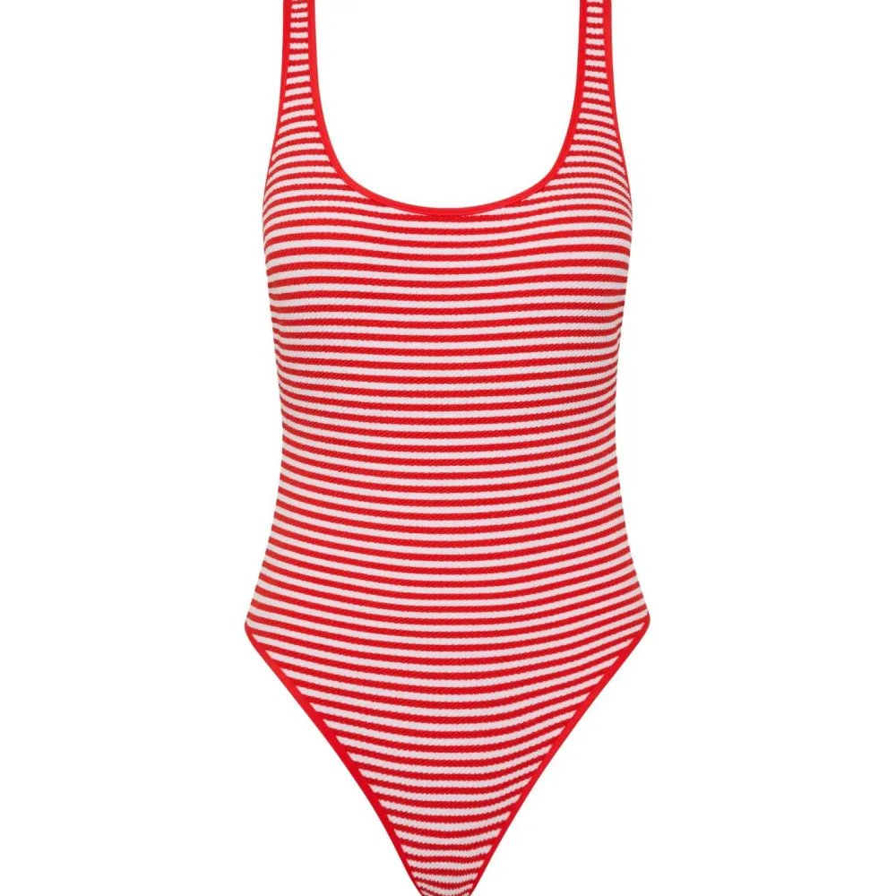 Der Clubhouse Retro One Piece von Seafolly verbindet zeitloses Design mit moderner Linienführung. Vorgeformte Cups, ein tiefer Ausschnitt vorne und ein markant ausgeschnittener Rücken sorgen für eine feminine, schmeichelnde Silhouette. Der hohe Beinausschnitt verlängert optisch das Bein, während kontrastierende Details sportliche Eleganz verleihen. Weiche Materialien und recyceltes Futter bieten angenehmen Komfort.