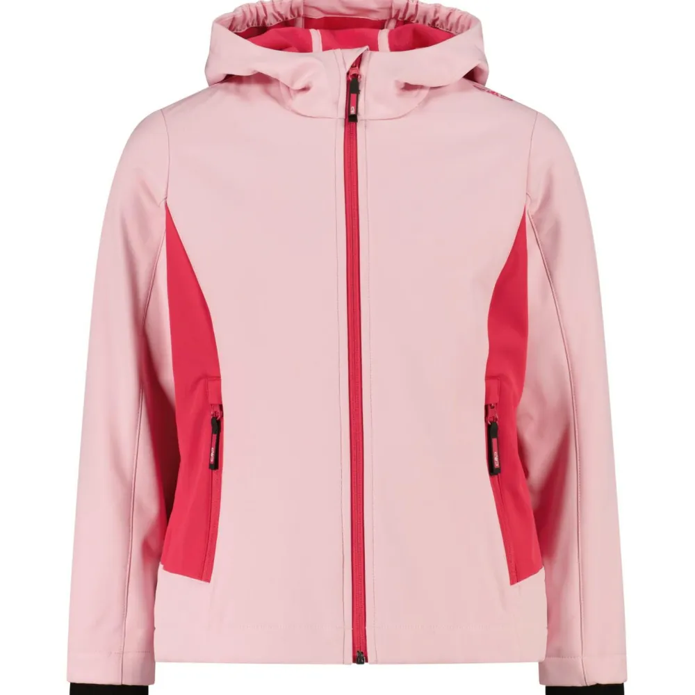 Dank hohem Kragen und Kapuze sind auch Kopf und Hals dabei bestens vor Wind, Kälte und Regen geschützt. Die wetterfeste CMP Jacke ist mit Klettverschlüssen an den Ärmelenden ausgestattet und lässt sich per Kordelzug auch am Jackensaum verstellen. Für die Hände oder wichtige Accessoires stehen zwei praktische Fronttaschen mit Reißverschluss in der Girl’s Jacket Fix Hood Softshell Softshelljacke bereit.