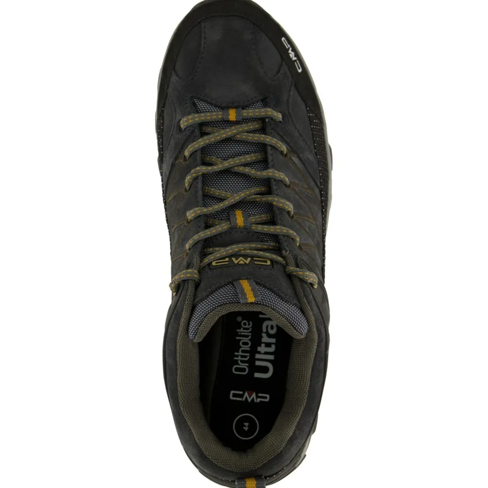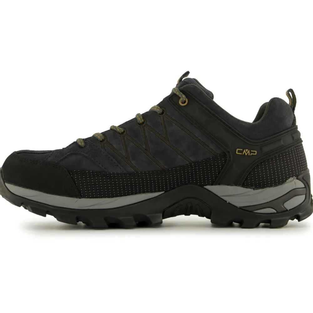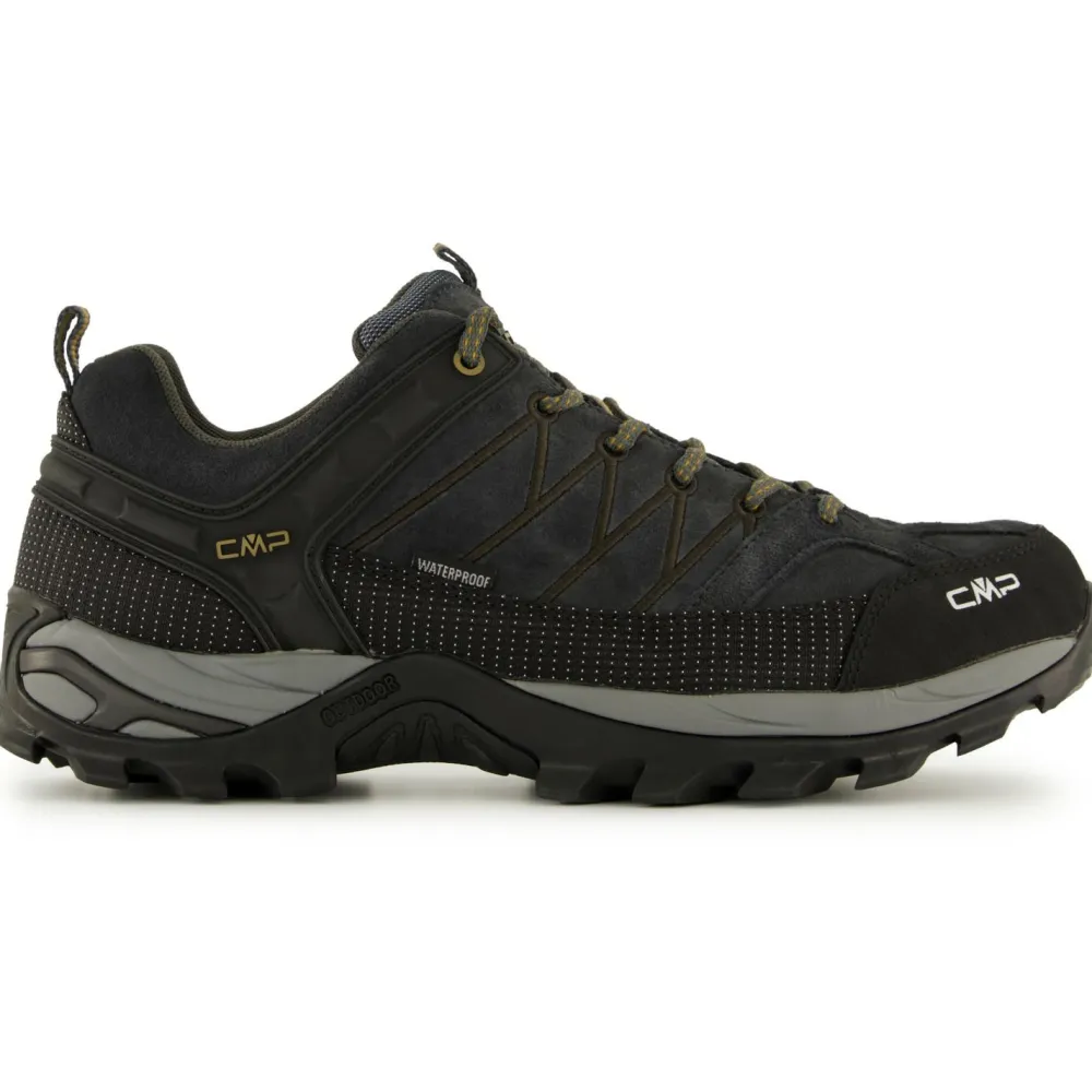 CMP fertigt die Rigel Low Trekking Shoes Waterproof Multisportschuhe aus 1,4 mm dickem Veloursleder und ergänzt das hochwertige Leder mit Verstärkungen aus Polyester. Die griffige Gummi CMP FullOn GRIP Sohle wird mit einer EVA und TPU Zwischensohle und einer Ortholite Brandsohle ergänzt.