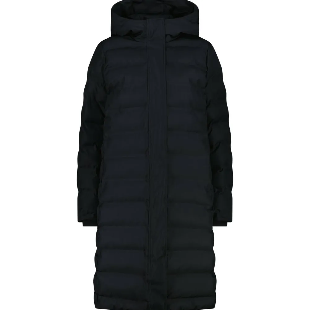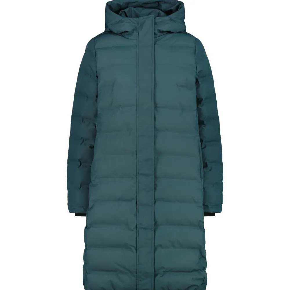 Mit dem Women’s Down Coat Fix Hood Mantel von CMP kannst Du den ganzen Tag beim Wandern, Schlittenfahren oder Skifahren im Schnee verbringen und er wird dennoch keine Feuchtigkeit eindringen lassen. Mit seiner Wassersäule von 10 000 mm und den getapten Nähten ist er komplett wasserdicht. Sollte er dennoch einmal feucht geworden sein, isoliert auch dann das Füllmaterial aus Kunstfaser noch effektiv. Kommst Du bei einem steilen Anstieg ins Schwitzen, kann der Women’s Down Coat Fix Hood Mantel die Feuchtigkeit gut nach außen abtransportieren. Der lange Schnitt und die elastischen Ärmelabschlüsse sorgen dafür, dass weder Kälte noch Schnee eindringen kann.