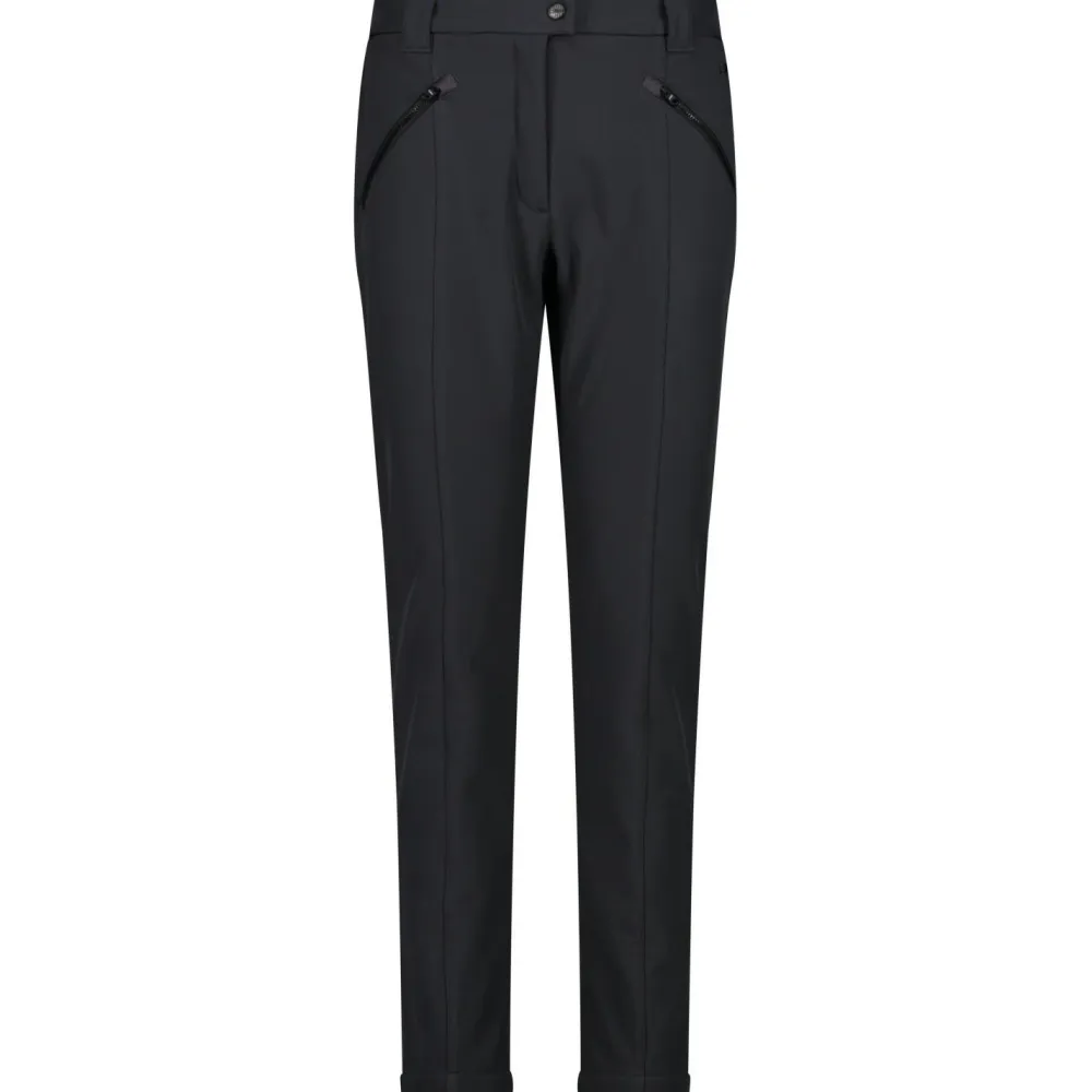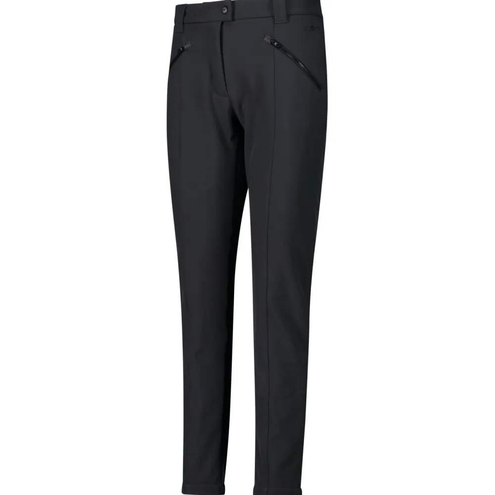 Die Women’s Long Pant Softshell 3A11266 Softshellhose von CMP besteht aus stretchy Softshell mit 280 g/m² Materialstärke. Sie ist strapazierfähig, trocknet zügig und sorgt für tolle Beweglichkeit beim Wandern und Klettern. Mit ihrem breiten Hüftbund mit Knopfverschluss sitzt die Softshellhose bequem und sicher. Die CMP Hose ist eher körpernah geschnitten und trägt sich damit perfekt bei sportlichen Outdooraktivitäten.