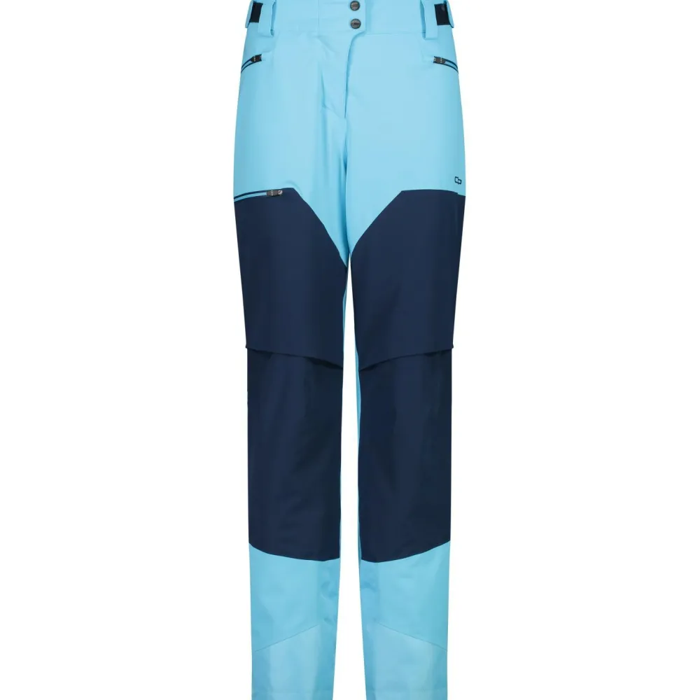 Mit den vollständig getapten Nähten und der Wassersäue von 10 000 mm bewahrt Dich die Women’s Pant Twill Skihose vor Nässe, auch wenn Du den ganzen Tag im Schnee verbringst. An den besonders beanspruchten Stellen, wie Knie und Gesäß hat CMP die Women’s Pant Twill Skihose verstärkt. Je nach Schuhwerk kannst Du die Beinabschlüsse mit Klettverschlüssen enger und weiter stellen, sodass dort kein Schnee hereinkommen kann. Für einen besonders hohen Komfort sorgt der breite Hüftbund, den Du individuell an Deinen Körper anpassen kannst.