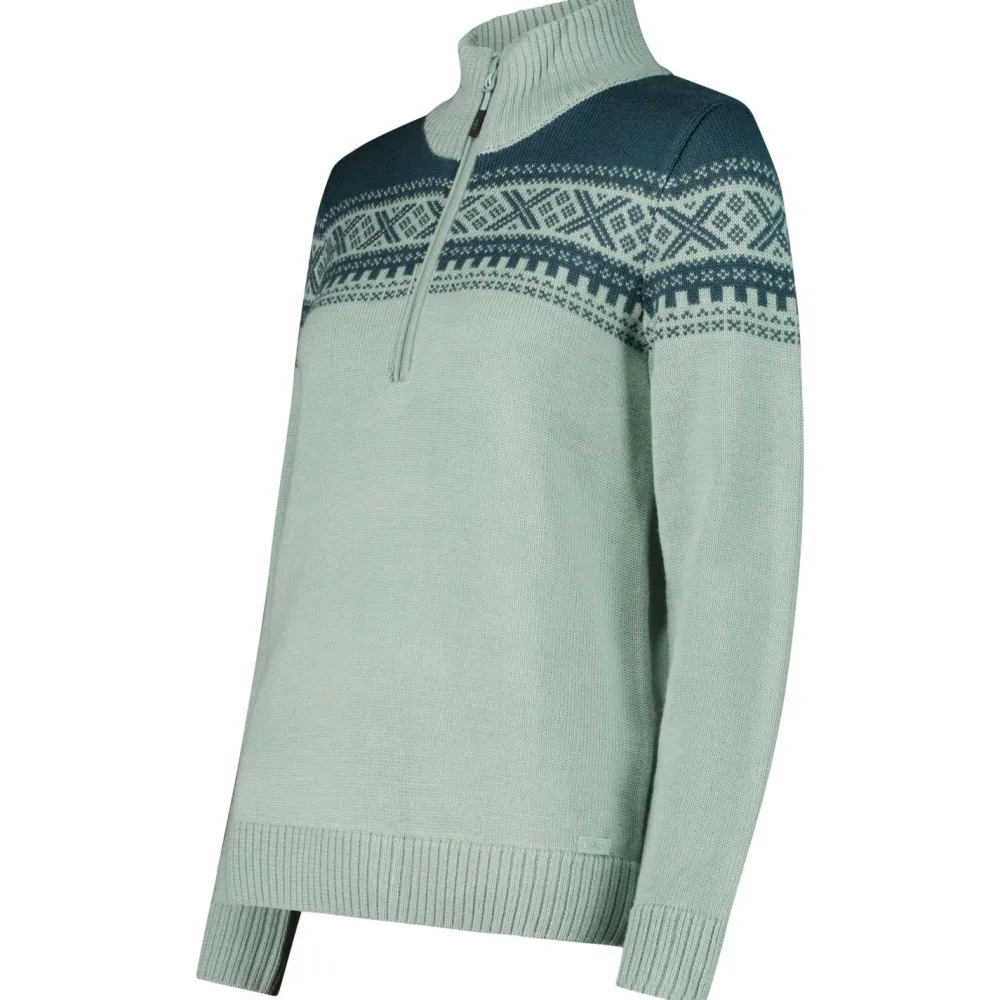 Mit dem Women’s Sweat Knitted Yarn 7H76506 Pullover von CMP kannst Du es Dir so richtig gemütlich machen. Der hohe Kragen schützt Deine empfindliche Halsregion vor Kälte, wird es dann aber doch warm, kannst Du einfach den halblangen Reißverschluss vorne öffnen. Dank der Mischung aus Wolle und Kunstfaser ist der Women’s Sweat Knitted Yarn 7H76506 Pullover deutlich robuster und langlebiger, als herkömmliche Wollpullover.