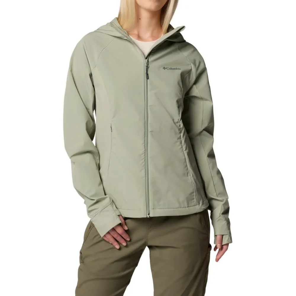 Die Women’s Sweet As III Hooded Softshell Jacke von Columbia eignet sich perfekt für Wanderungen, für Reisen und als vielseitige und zuverlässige Freizeit- und Alltagsjacke. Sie sorgt für guten Windschutz und schützt dabei auch Hals und Kopf mit hohem Kragen und Kapuze. Die Jacke ist leicht tailliert und verfügt über eine verlängerte Rückenpartie. Dank ihrer Mischung aus Polyester, Nylon und Elasthan ist die Softshelljacke atmungsaktiv und trocknet zügig. Sportliche Bewegungen macht das stretchfähige Funktionsgewebe optimal mit. Außerdem gehören zur Ausstattung zwei Fronttaschen mit Reißverschluss und ein Kordelzug im Jackensaum. Breite Bündchen mit extra Daumenschlaufen ergänzen die sportliche Ausrichtung.