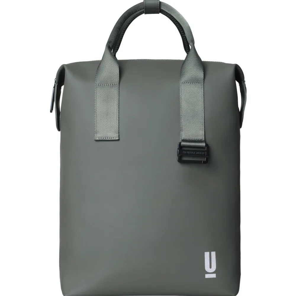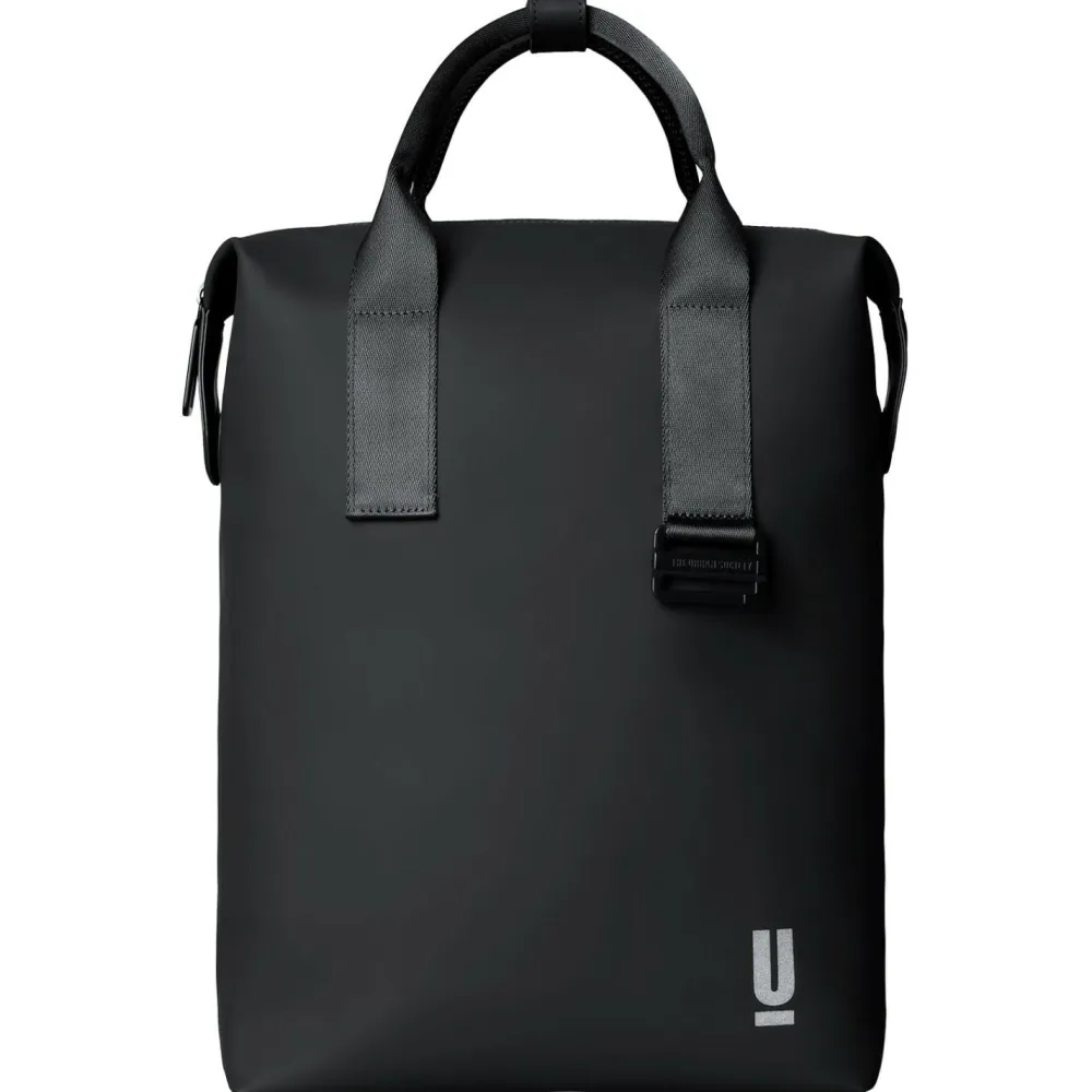 Der Rucksack besteht aus hochwertigem, veganem Eco-Tech PU und recyceltem Nylon. Im Inneren findest Du ein herausnehmbares, gepolstertes Laptopfach mit praktischem Druckknopfverschluss sowie eine herausnehmbare Organizer-Tasche mit wasserabweisendem Reißverschluss. Seitliche Magnetverschlüsse sorgen für schnellen Zugriff, während reflektierende Details Deine Sichtbarkeit erhöhen.