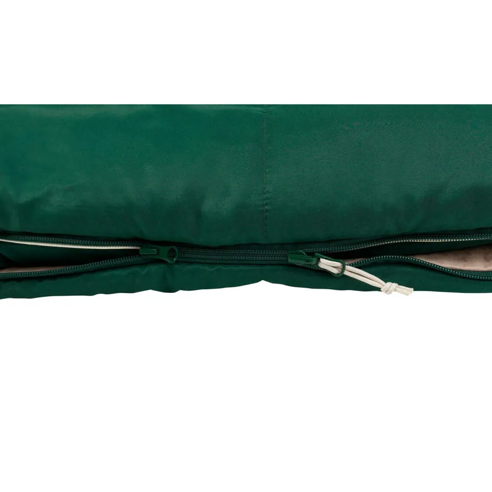 Ein integriertes Kissen erhöht den Liegekomfort, ohne dass Du zusätzlich etwas einpacken musst. Der L-förmige Reißverschluss lässt sich leicht bedienen und erlaubt es, den Schlafsack vollständig zu einer Decke zu öffnen. Eine durchgehende Abdeckleiste reduziert Wärmeverlust und Befestigungsschlaufen im Fußbereich fixieren ein optionales Inlett. Für gemeinsam Reisende lassen sich zwei Modelle miteinander koppeln. Im Kompressionssack wird der Schlafsack kompakt verstaut und ist schnell wieder zur Hand.