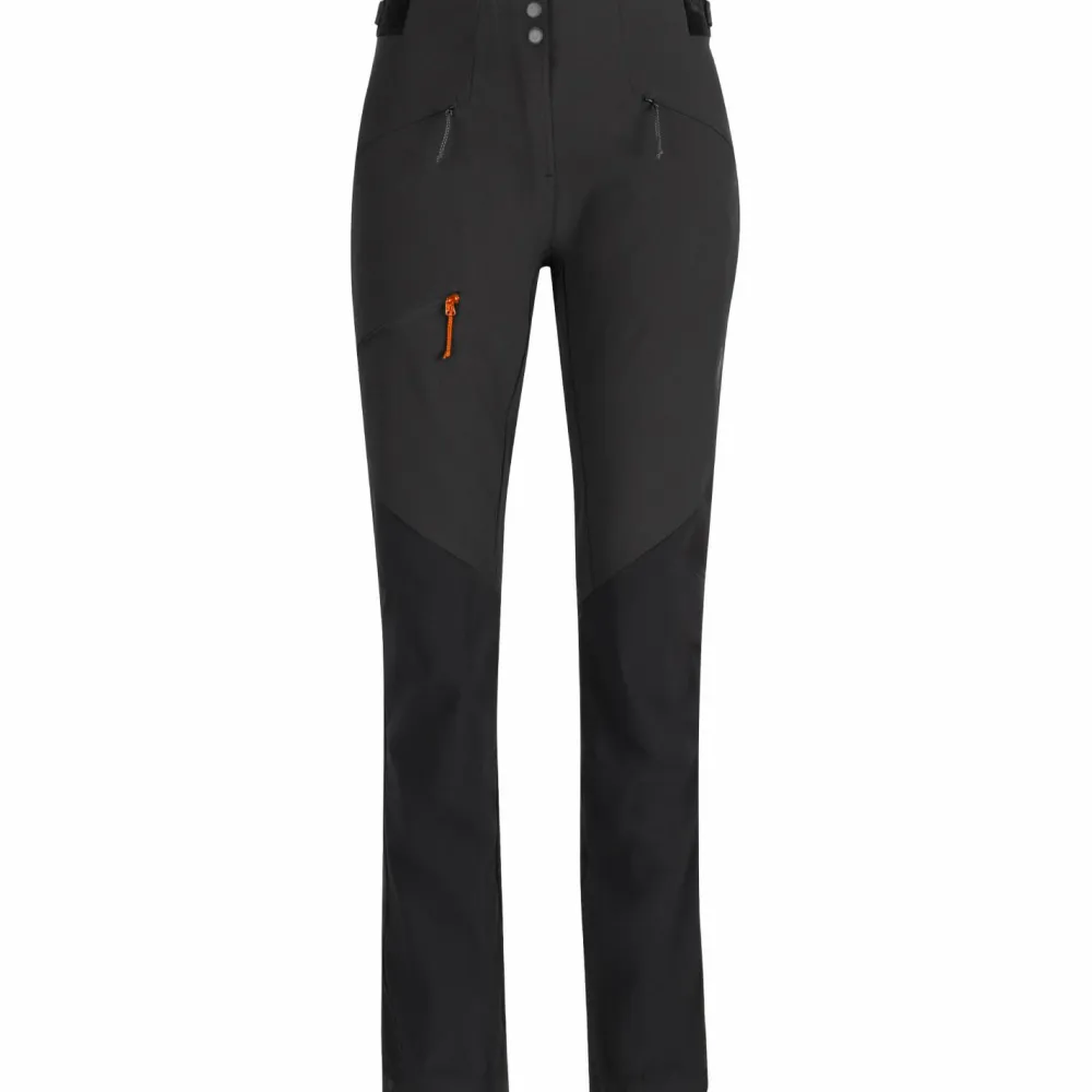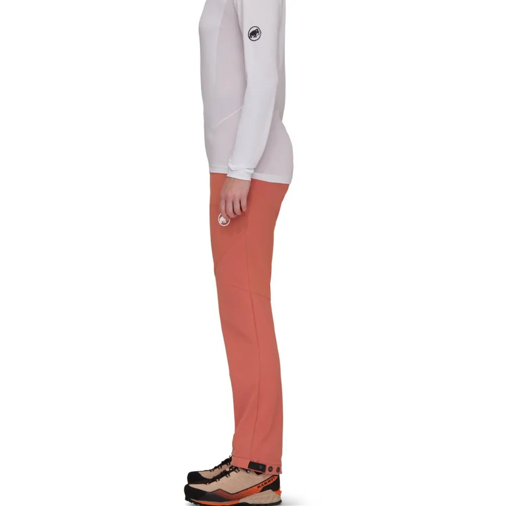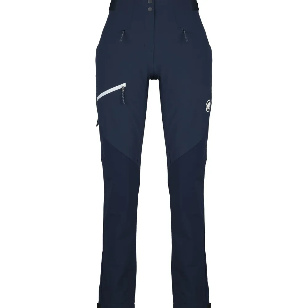Die hochwertige Hybrid-Softshell-Hose Women’s Courmayeur SO Pants hat Mammut für ambitionierte Bergsportlerinnen entwickelt. Dank ihres hoch atmungsaktiven, elastischen und windabweisenden Schoeller-Softshell-Materials ist sie vielseitig einsetzbar, angenehm zu tragen und gibt unheimlich viel Bewegungsfreiheit. Das robustere Double-Weave-Material im Gesäß-, Knie- und unteren Beinbereich ist besonders abriebfest und scheut auch den Kontakt mit Fels nicht. Die Taillenbundverstellung lässt sich von außen bedienen und sorgt für einen perfekten Sitz. Ein asymmetrisch geformter Saum und ein verstaubarer Befestigungshaken garantieren eine optimale Passform der Hose über den Bergschuhen. Die Beinenden lassen sich zusätzlich durch Druckknöpfe in der Weite verstellen.