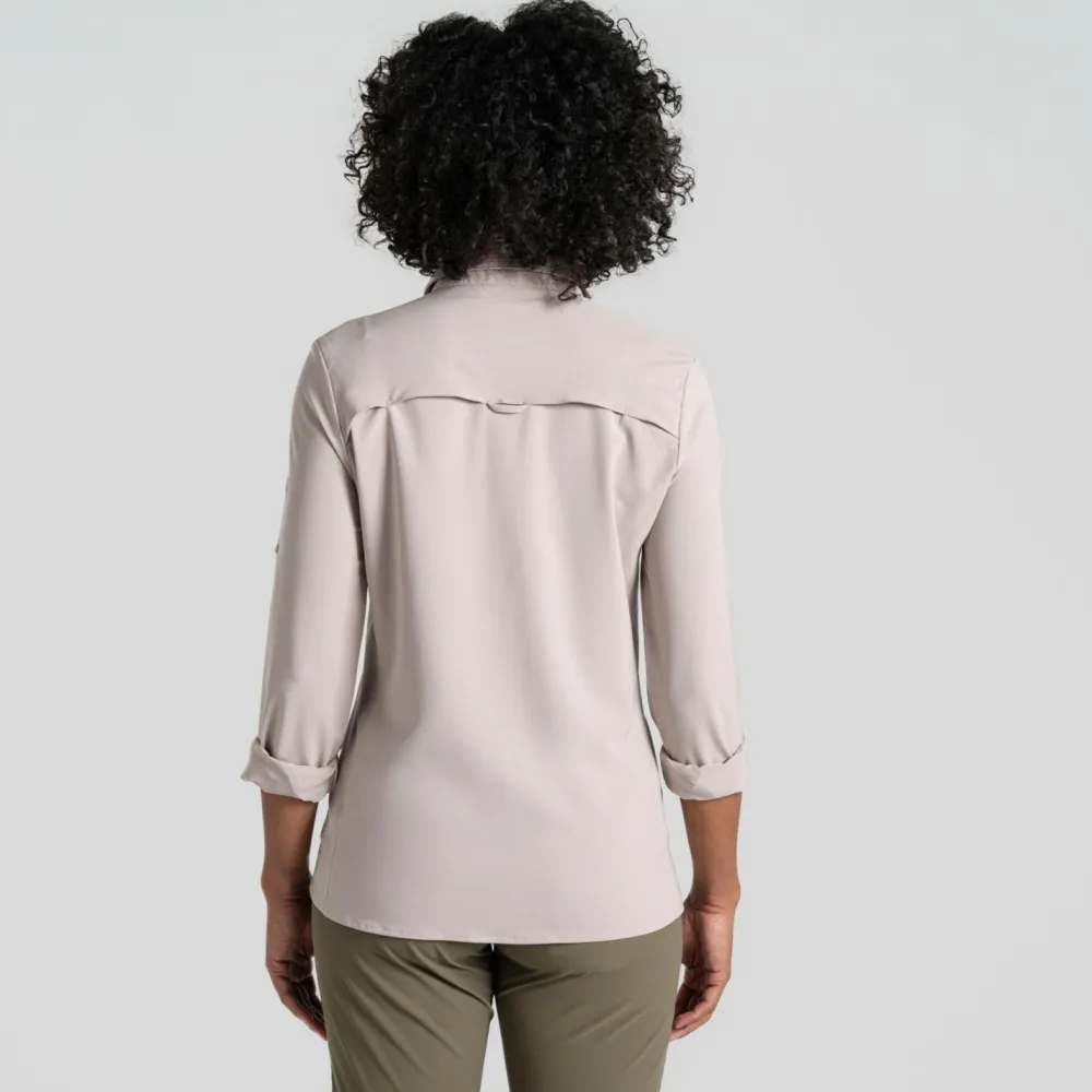 Wandern, Trekking und eine generell aktive Freizeitgestaltung sind mit der Women’s Nosilife Pro Langarm Bluse V von Craghoppers kein Problem. Diese Bluse ist sehr angenehm zu tragen und engt Dich aufgrund des nahezu geraden Schnitts und des elastischen Materials nicht ein. Zusätzlich ist das Material aber auch atmungsaktiv und schnelltrocknend. Praktisch: Die NosiLife-Behandlung hält lästige Stechmücken und Zecken zuverlässig fern.