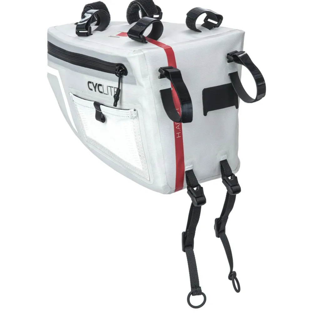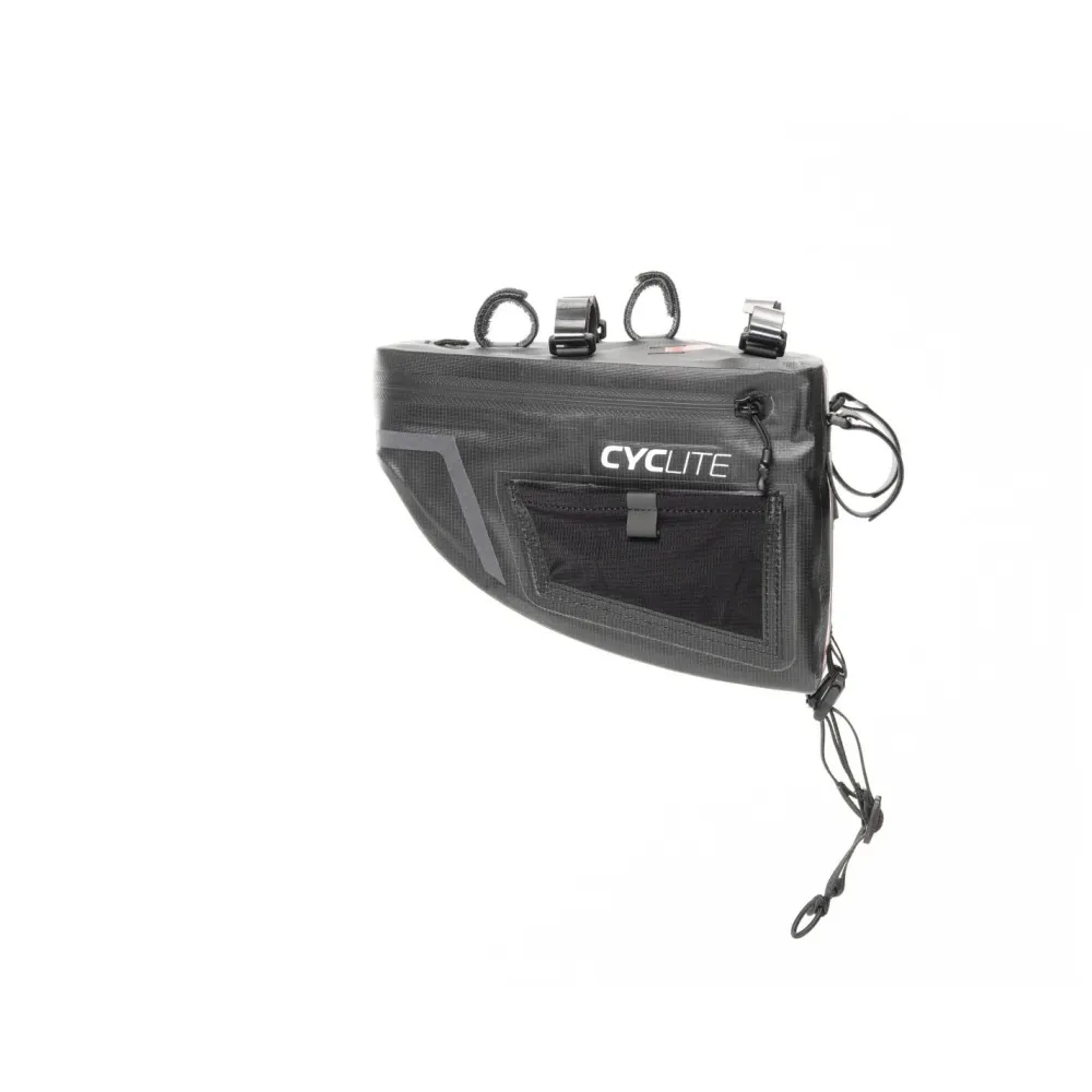 Die Handle Bar Aero Bag Lenkertasche von Cyclite ist eine geräumige Fahrradtasche, die sich optimal an Aero-Lenkern befestigen lässt.Wird sie an Standard-Lenkern montiert, muss sie gut zur Gabel-Krone hin verspannt werden oder sich am Steuerrohr abstützen. Wetterfeste Materialien verhindern das Eindringen von Regen, oder Feuchtigkeit und sorgen dafür, dass Deine transportierten Gegenstände trocken und sicher von A nach B gelangen.
