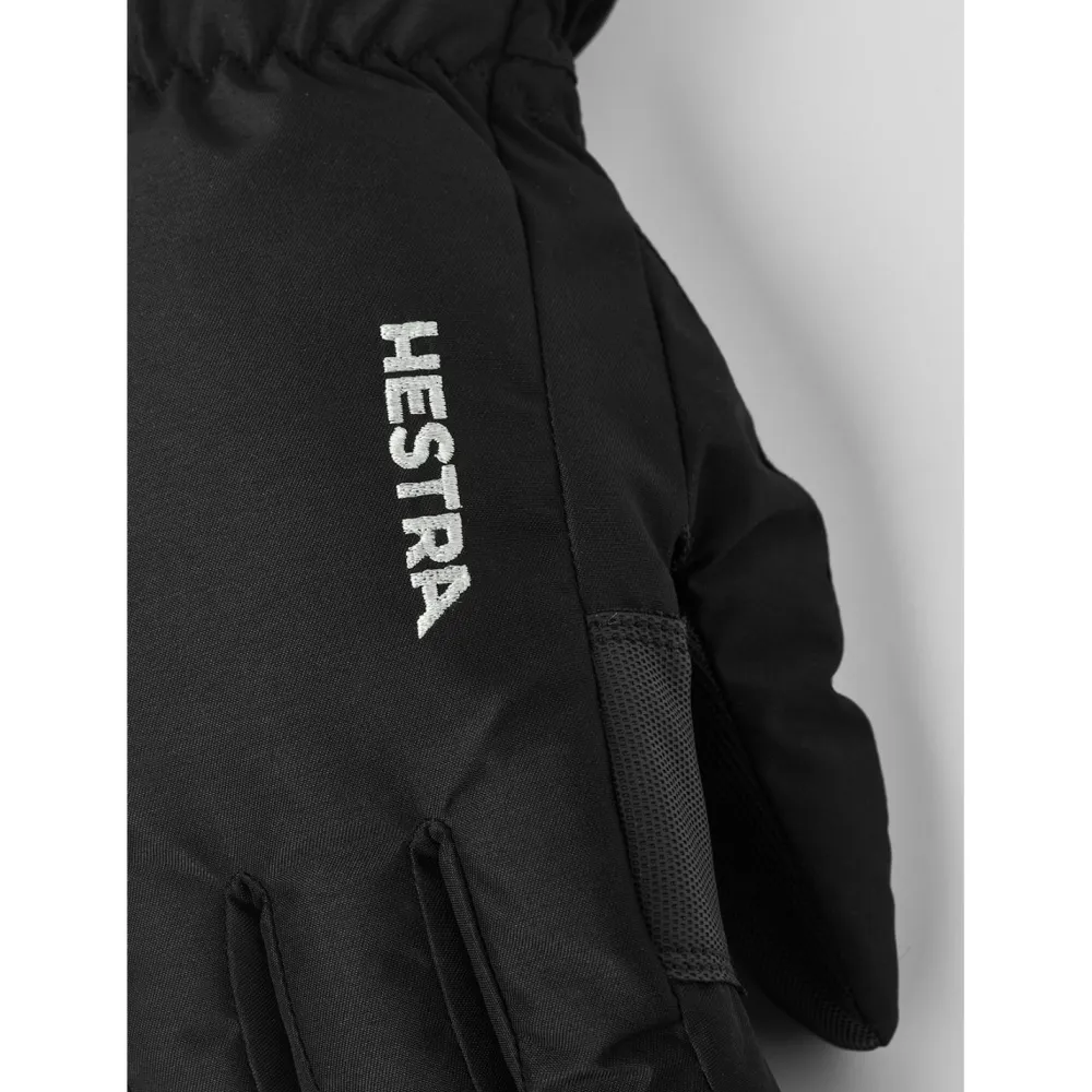 Kunstfaserhandschuhe für den alpinen Einsatz – die Czone Cosmo 5 Finger von Hestra. Dank Kordelzug am Handgelenk und Schneeschutz haben Schnee und Nässe keine Chance. Das atmungsaktive, sowie wasser- und winddichte Kunstfasermaterial ist dabei den Herausforderungen in den Bergen gewappnet.