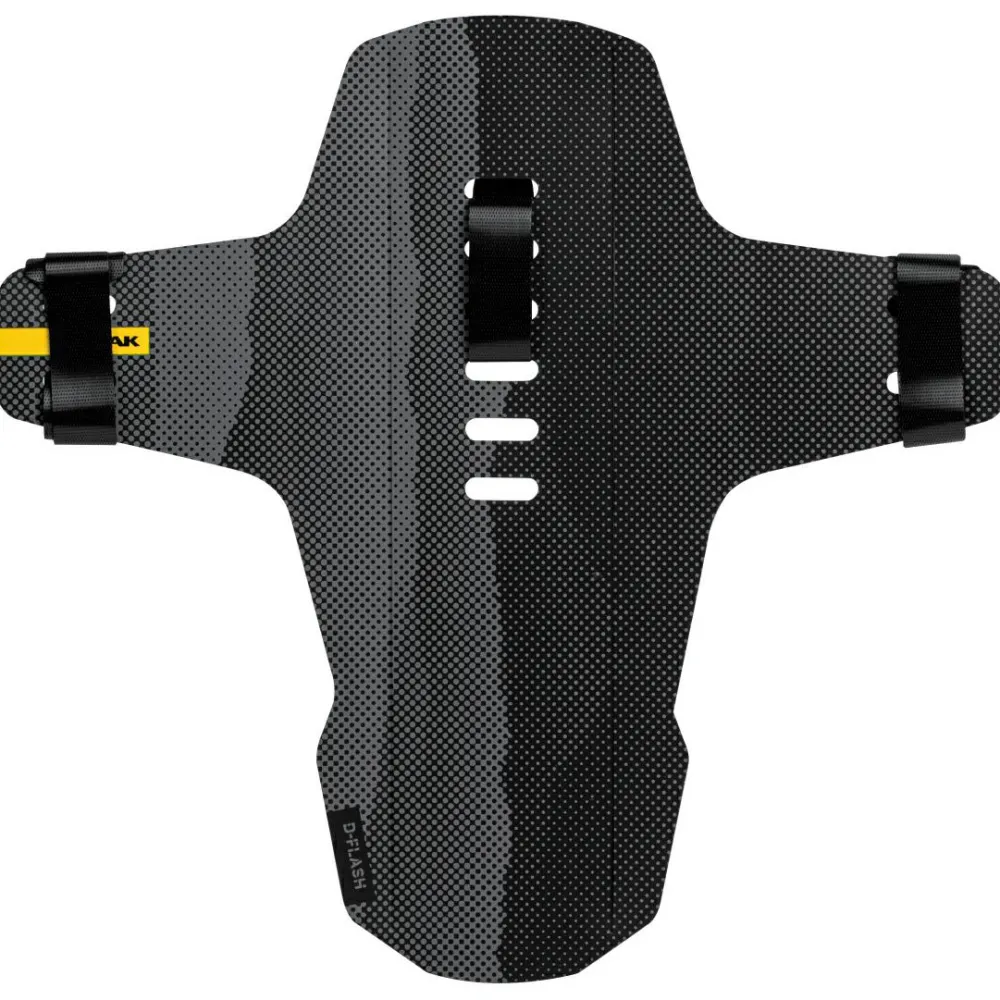 Das D-Flash Express FS Schutzblech von Topeak ist extrem leicht, sieht cool aus und lässt sich in kürzester Zeit montieren. Im Einsatz sorgt es dafür, dass Spritzwasser und Schmutz schnell wieder auf den Boden der Tatsachen zurückgeschleudert werden und sich nicht in der Kleidung festsetzen können. Mit den robusten Klettgurten kann das Schutzblech angebracht werden und sitzt fest, auch wenn es mit dem Bike holprig von A nach B geht.