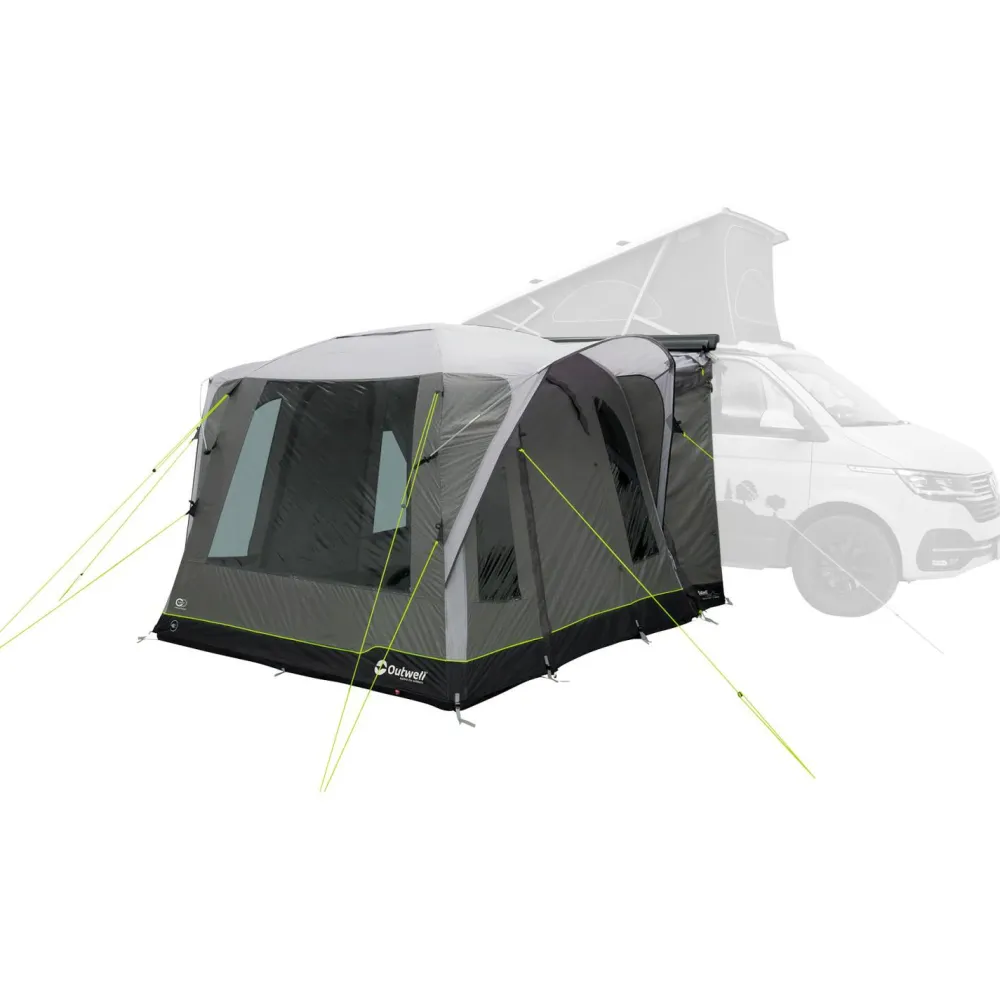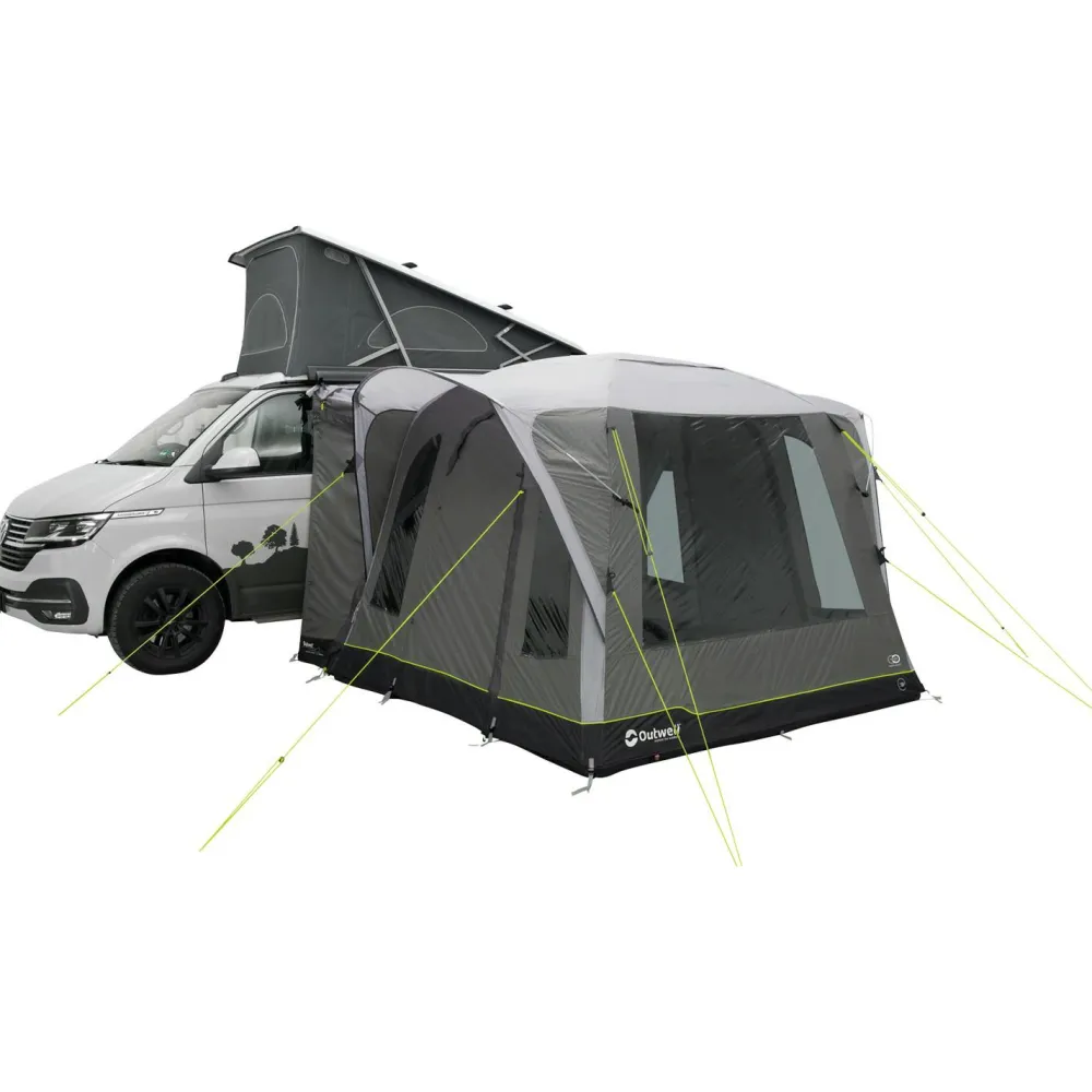 Das Outwell Daytona Air Busvorzelt ist aus hochwertigen Materialien gefertigt, die für Langlebigkeit und Schutz sorgen. Mit einer Wassersäule von 3.000 mm bietet das Outtex 3000 Select Material zuverlässigen Schutz vor Regen, während die atmungsaktiven und flammhemmenden Eigenschaften für Komfort und Sicherheit sorgen. Das One Air System in Kombination mit dem Duratec Fiberglasgestänge sorgt für eine stabile Konstruktion, die auch bei windigen Bedingungen standhält. Diese Merkmale machen das Zelt zu einer robusten Wahl für alle Wetterlagen.