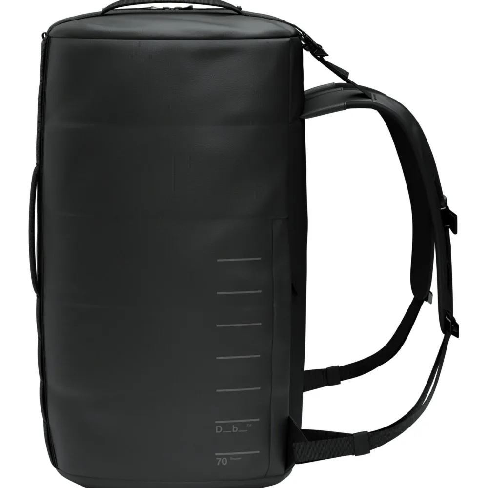 Der Roamer Pro Split Duffel 70 von DB ist eine fassförmige Reisetasche, die sich durch einen mittleren Reißverschluss in zwei Hälften unterteilt. Diese Konstruktion erlaubt eine äußerst übersichtliche Organisierung des Gepäcks, so dass Du Deine Sachen bequem verstauen und ohne langes Suchen schnell wieder hervorholen kannst. Im Inneren helfen Dir Mesh-Fächer und ein Fach für nasse Kleidung, Ordnung zu halten. Die Tasche verfügt außerdem über gepolsterte Schulterträger, einen ebenfalls gepolsterten Rücken und stabile Tragegriffe. So kannst Du sie komfortabel von A nach B transportieren.