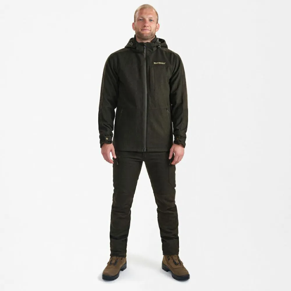 Eine Mischung aus Wolle und Polyester macht die Tatra Active Jacket von Deerhunter besonders warm, sportlich und bequem. Die Jacke ist temperaturregulierend und fast geräuschlos, da sie praktisch nicht raschelt. Mit hohem Kragen und abnehmbarer Kapuze ist sie für jede Situation optimal ausgerüstet. Für zusätzlichen Wetterschutz verfügt die Wolljacke über eine PFC-freie DWR-Behandlung, die Wassertropfen einfach an der Oberfläche abperlen lässt.