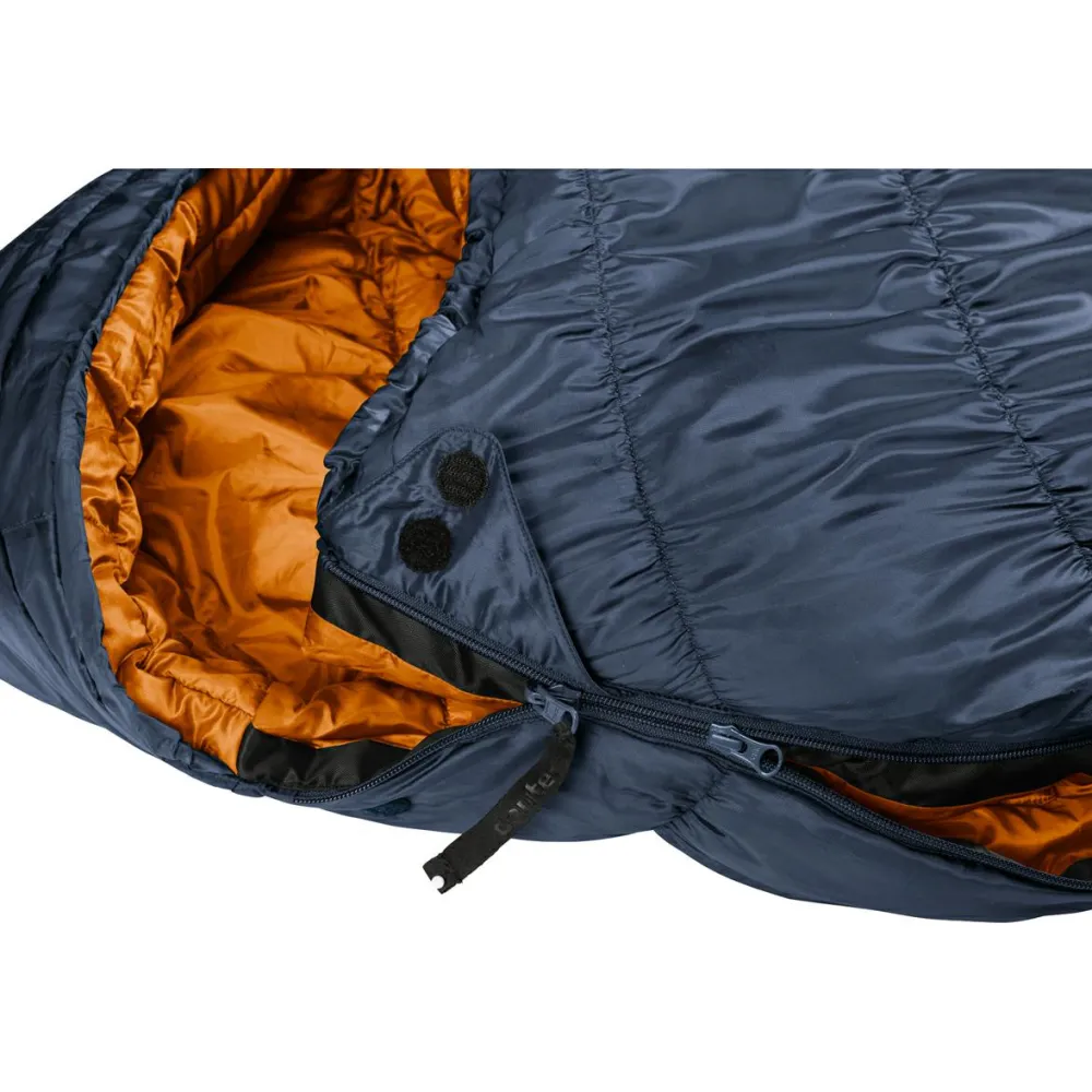 Warmer und erholsamer Nachtschlaf bei voller Bewegungsfreiheit: der Exosphere EL -6°C Kunstfaserschlafsack von Deuter macht’s möglich! Dieser robuste Allrounder ist ideal für groß gewachsene Outdoorer, die Wert auf Komfort legen, dabei aber nicht auf Leichtigkeit und Funktion verzichten wollen. Möglich macht es die hochwertige, auch bei Feuchtigkeit isolierende Thermo Pro Loft Füllung mit ihrer aufwändigen Schindelkonstruktion. Der Bezugsstoff aus hautfreundlichem Ripstop-Polyester innen sowie atmungsaktivem Ripstop-Polyester außen ist dank zusätzlicher PU-Beschichtung an der äußeren Dryzone ebenfalls wasserabweisend.