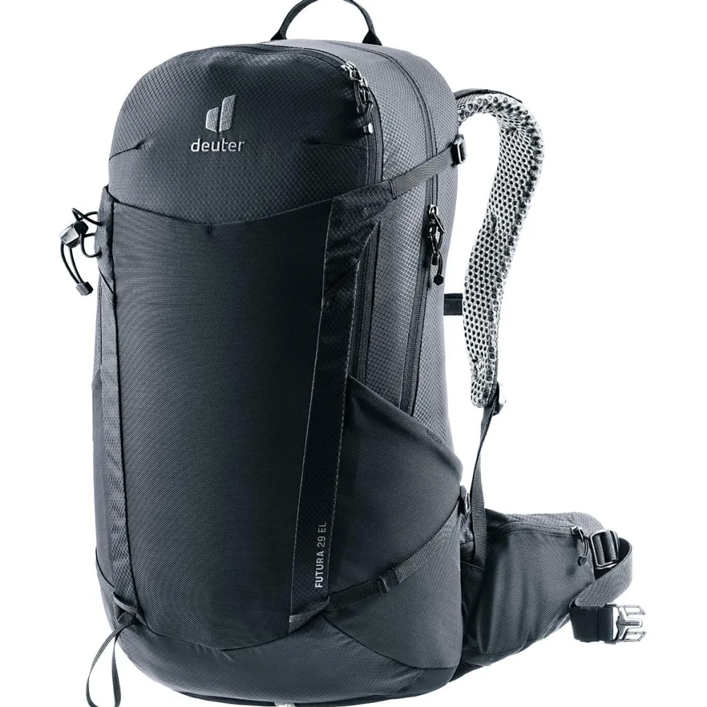 Der Futura EL 29 Wanderrucksack von Deuter eignet sich optimal für Tageswanderungen und bietet einen hervorragenden Tragekomfort bei einem geräumigen Innenleben. So hast Du viel Platz, um die wichtigsten Gegenstände unterwegs mit dabei zu haben und Ordnung zu halten. Bewegliche, ergonomisch geformte Schulterträger und weich gepolsterte Hüftflossen sorgen für einen körpernahen und stabilen Sitz und gleichmäßige Verteilung des Gewichts auf Hüfte und Schultern. Zusätzlich reduziert die durchgehende Polsterung an Hüftflossen und Schulterträgern Druckstellen und erhöht spürbar den Komfort.